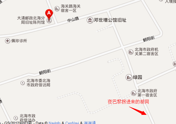 吃完饭去下一站大清邮局旧址,寄明信片。从/travel-scenic-spot/mafengwo/11814.html{北部湾} 广场坐3路公交车道二小站下车,车票1.5元。下了车往前走,看到右手边的国发夜/travel-scenic-spot/mafengwo/10573.html{巴黎} 酒店左转,进一条小巷子里。