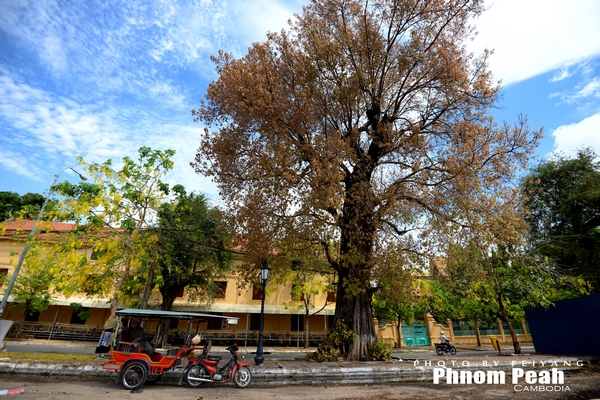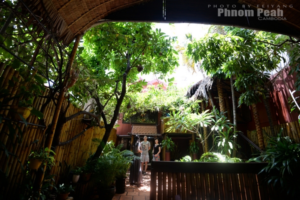 餐厅的院子里有一棵叫不出名字的树。在柬埔寨,我们不认识的植物有很多。