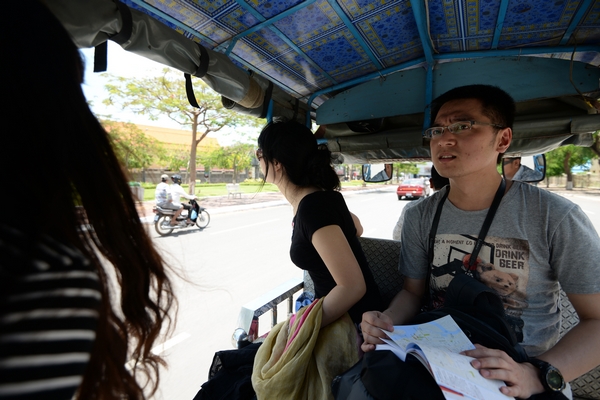 小伙伴们终于出来,我们准备坐tuk-tuk到Lonely Planet推荐的一家柬埔寨餐厅吃饭。