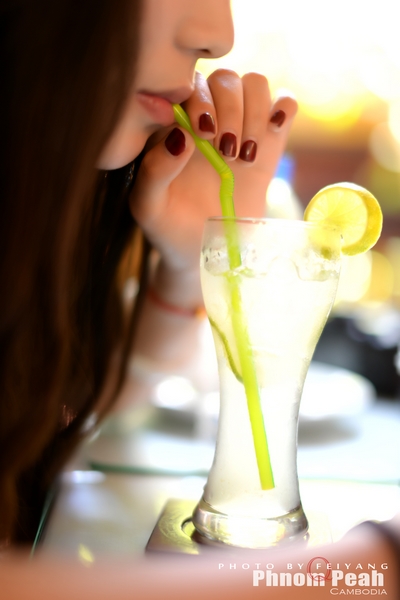 小Q在喝柠檬水,这是我们最常点的饮料。