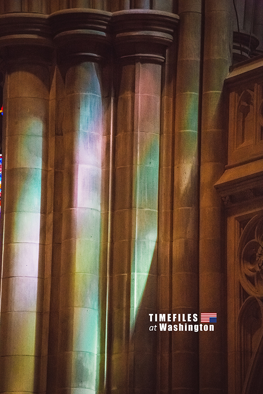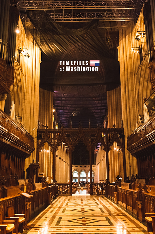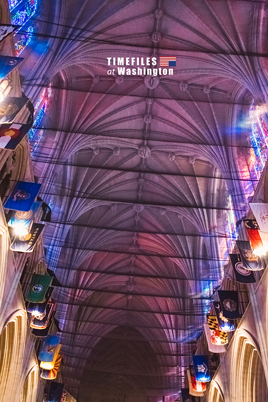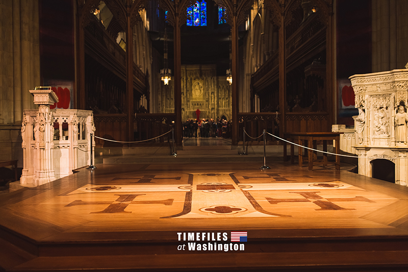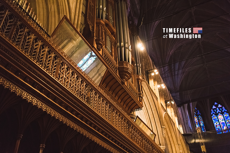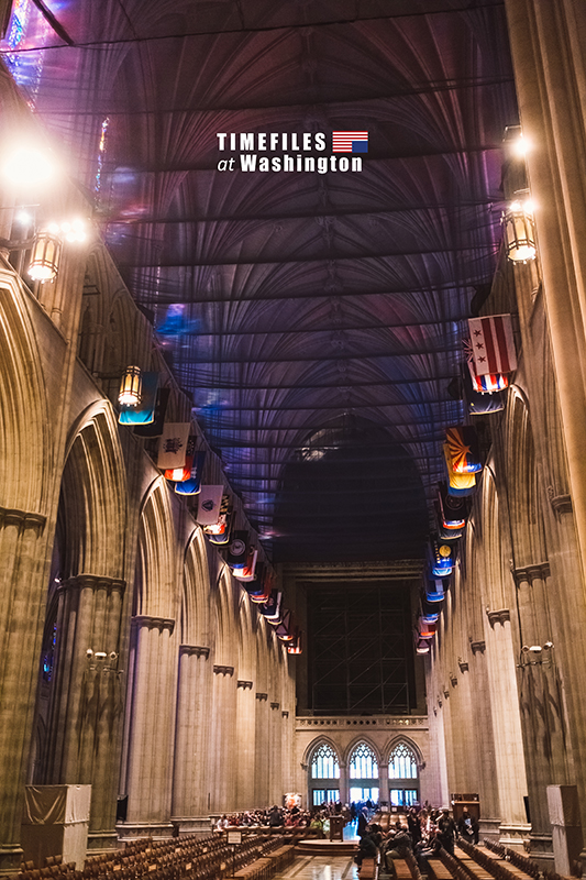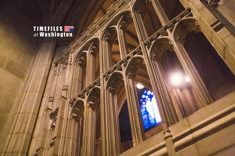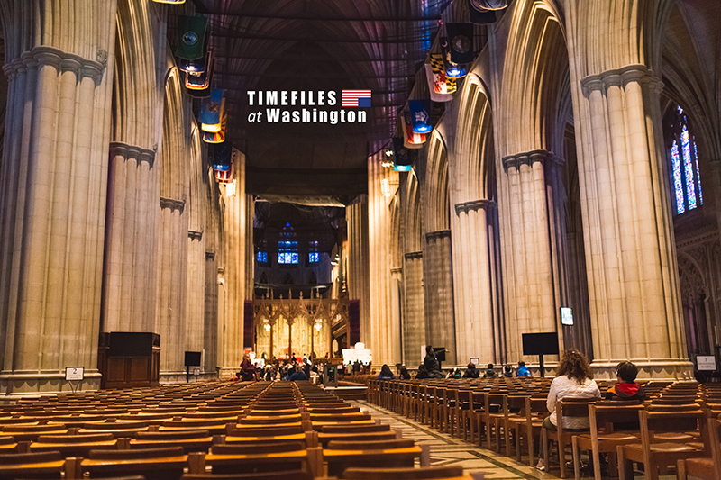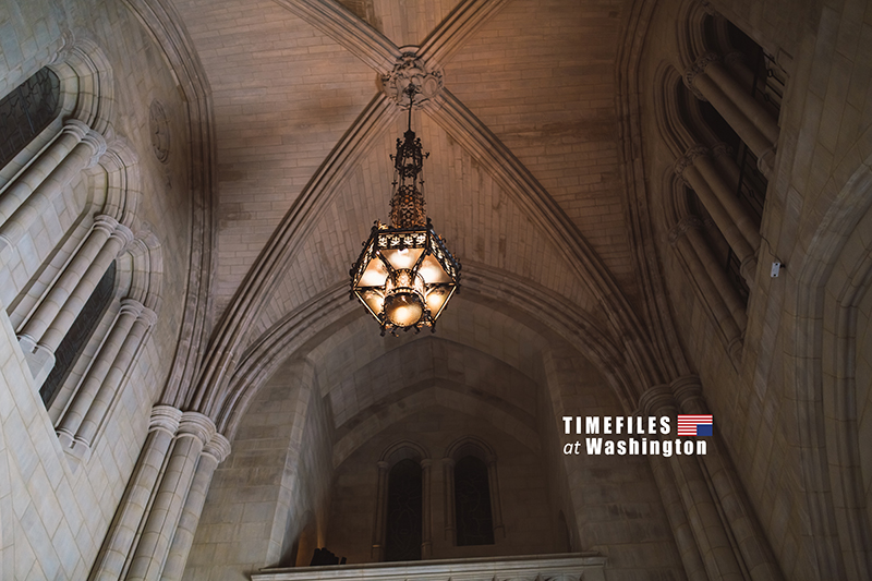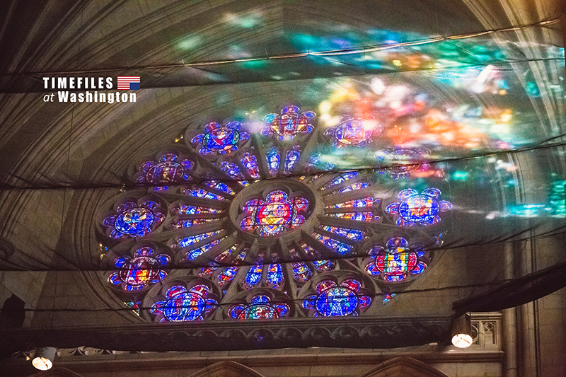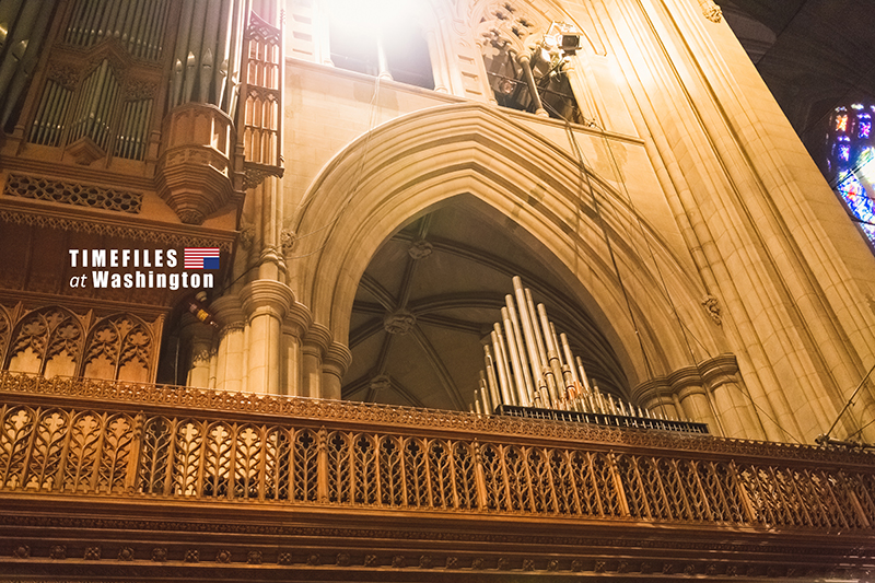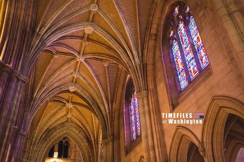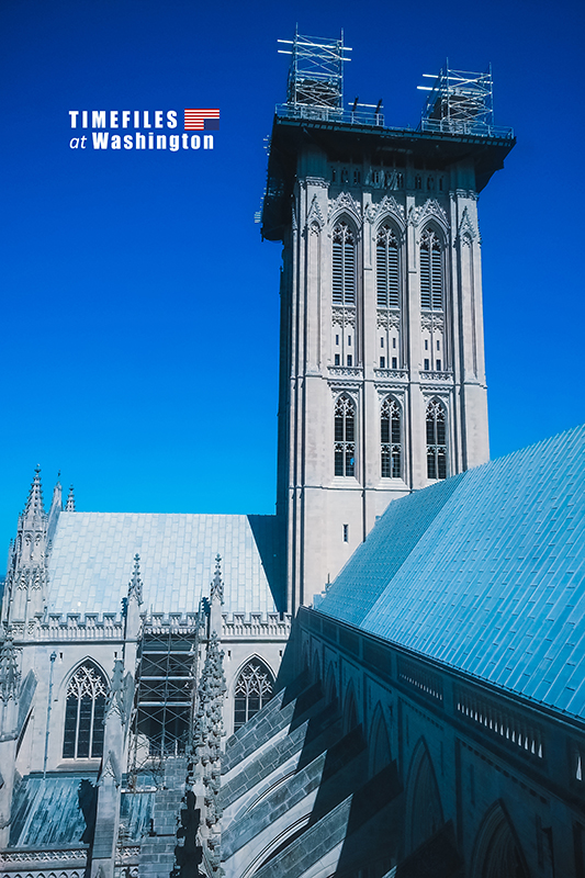 另一侧看出去,正好是教堂的顶端。2011年,华盛顿 特区近海发生了5.8级地震,这次地震给国家大教堂带来很大的损伤,以至于维修工作此后一直在进行。