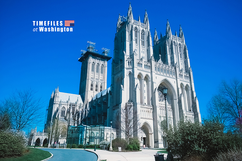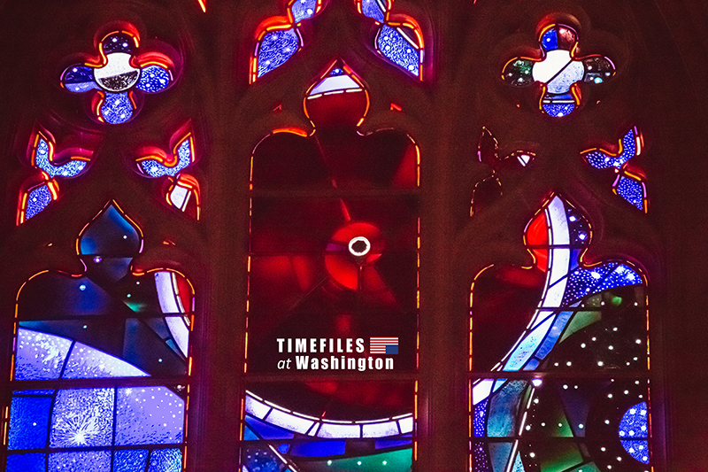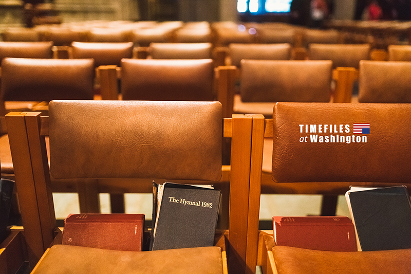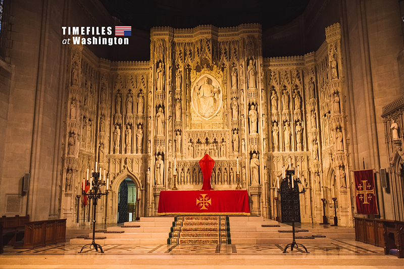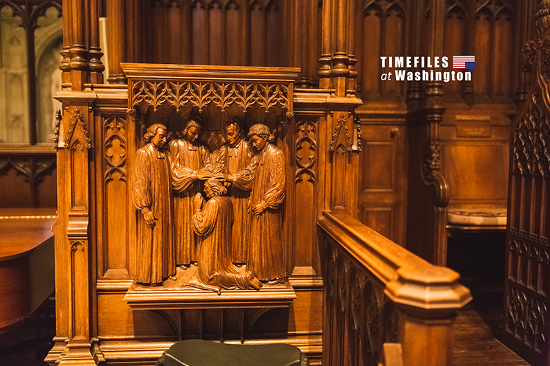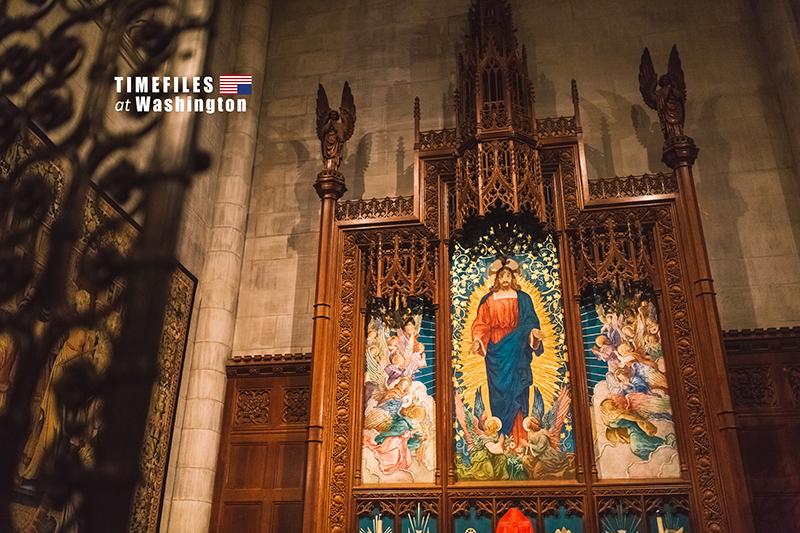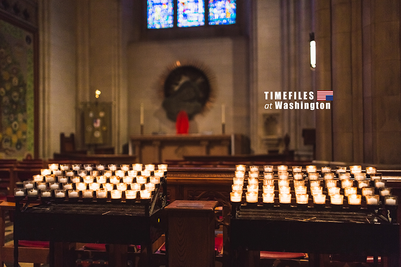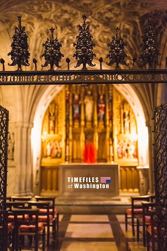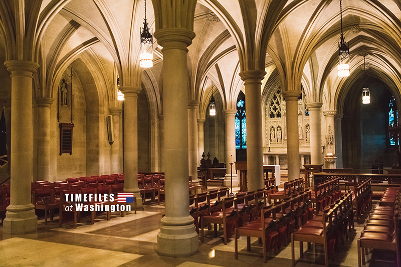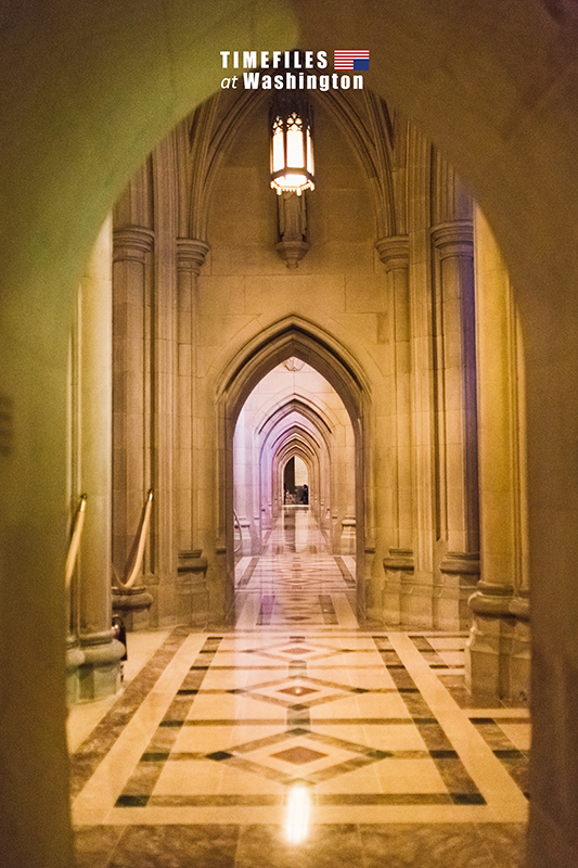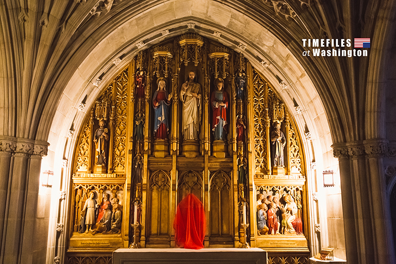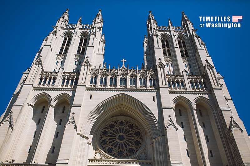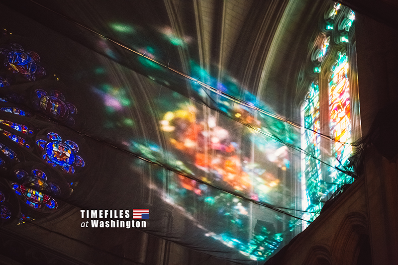 另一侧看出去,正好是教堂的顶端。2011年,华盛顿 特区近海发生了5.8级地震,这次地震给国家大教堂带来很大的损伤,以至于维修工作此后一直在进行。