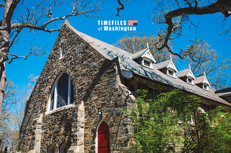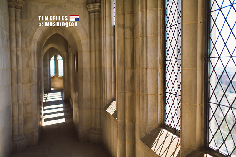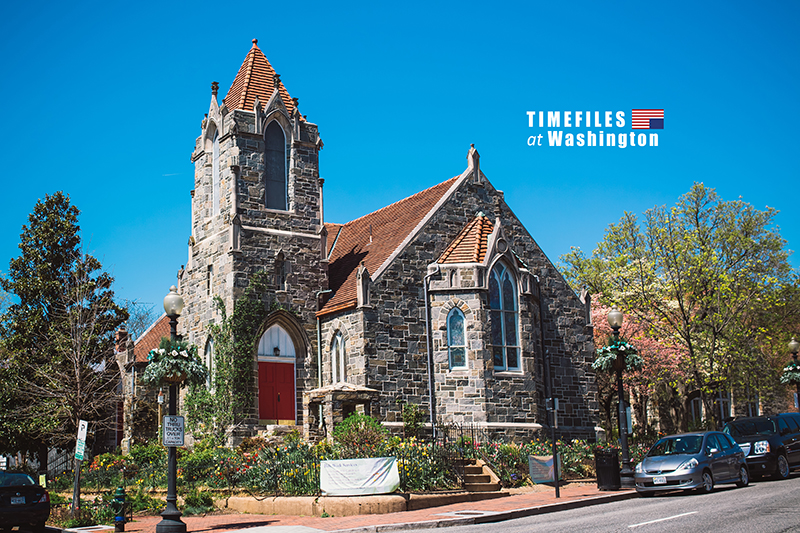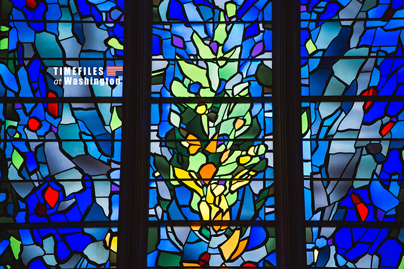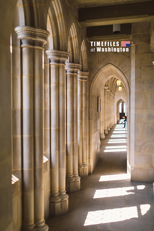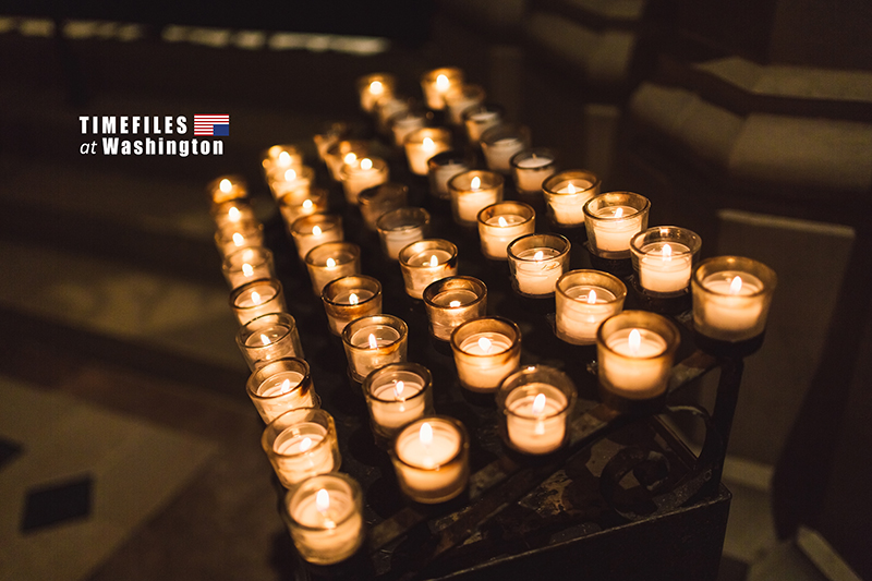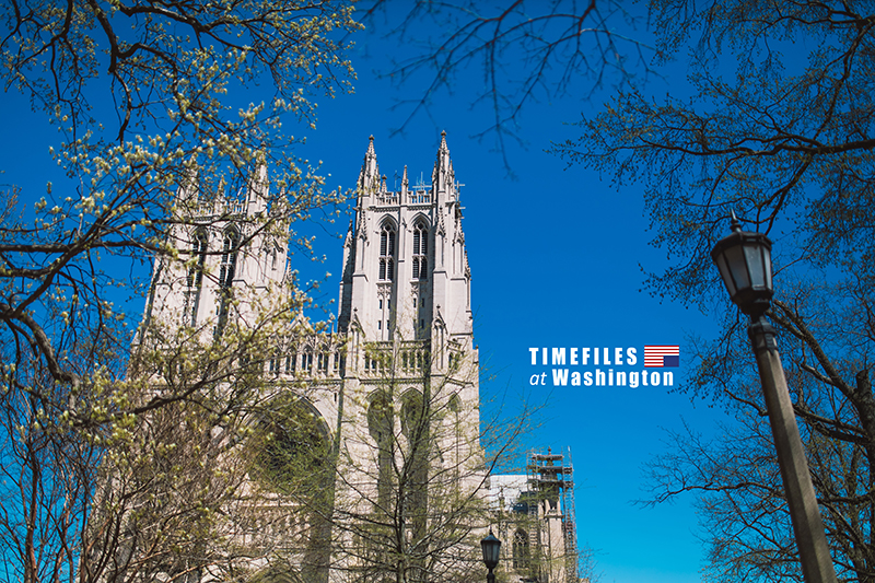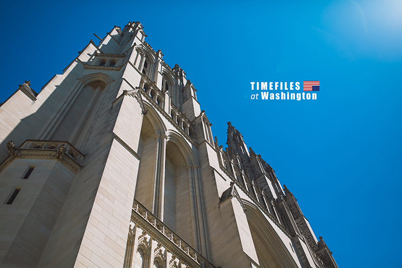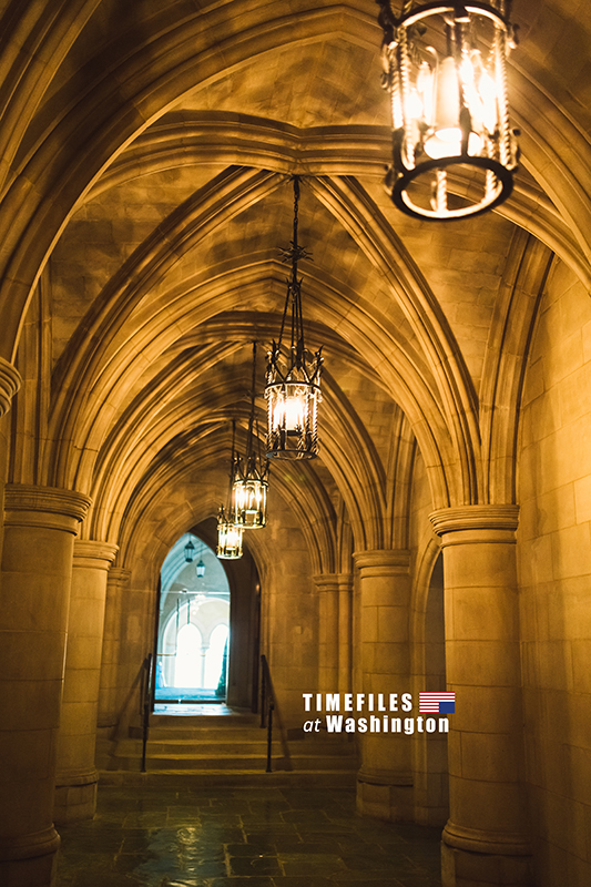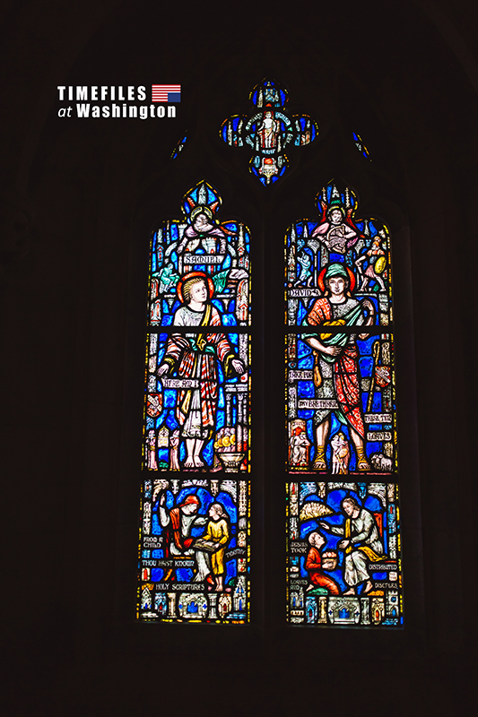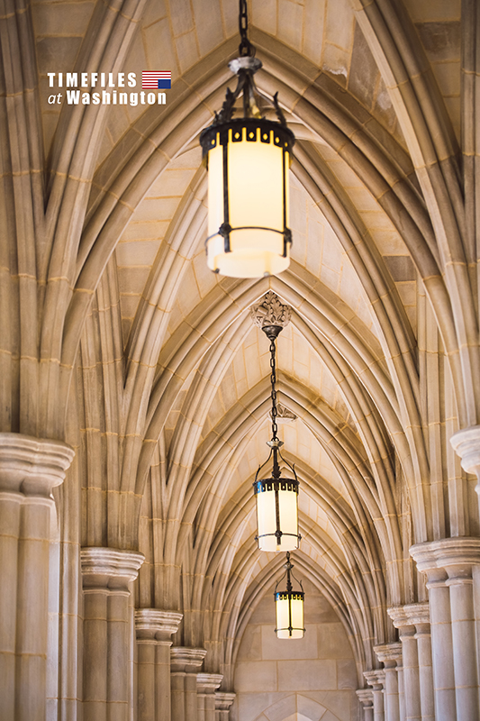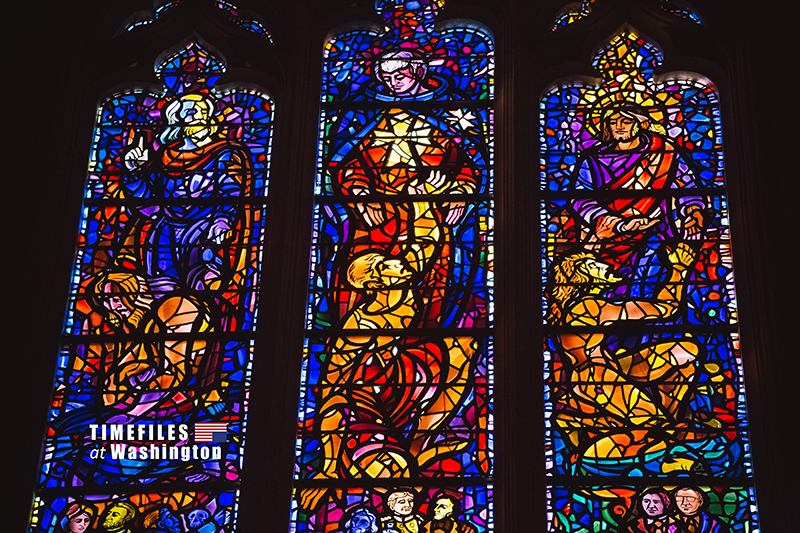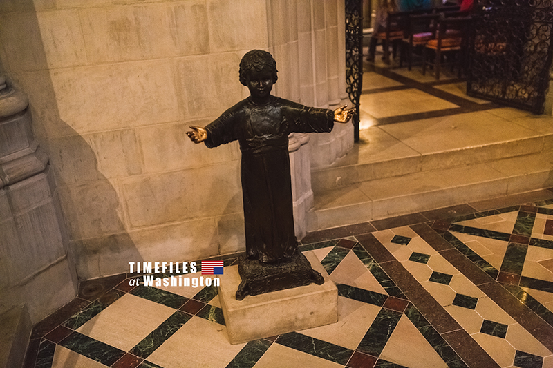 另一侧看出去,正好是教堂的顶端。2011年,华盛顿 特区近海发生了5.8级地震,这次地震给国家大教堂带来很大的损伤,以至于维修工作此后一直在进行。