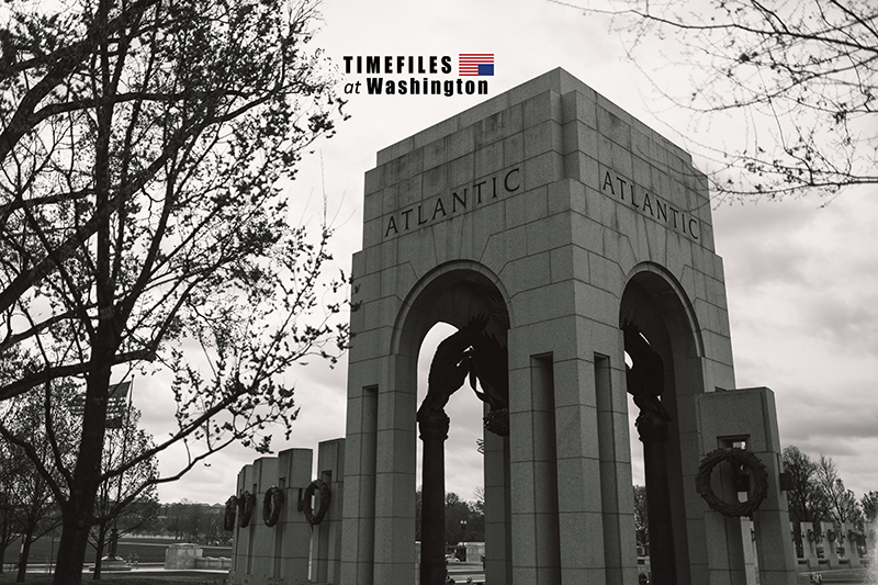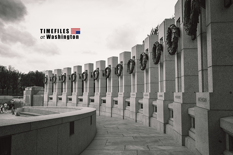二战纪念馆 由两扇门和五十六个花环组成,两扇门分别是大西洋和太平洋,五十六个花环代表了五十六个民族?(**~那是代表了五十六个美国 的州以及海外领土)
