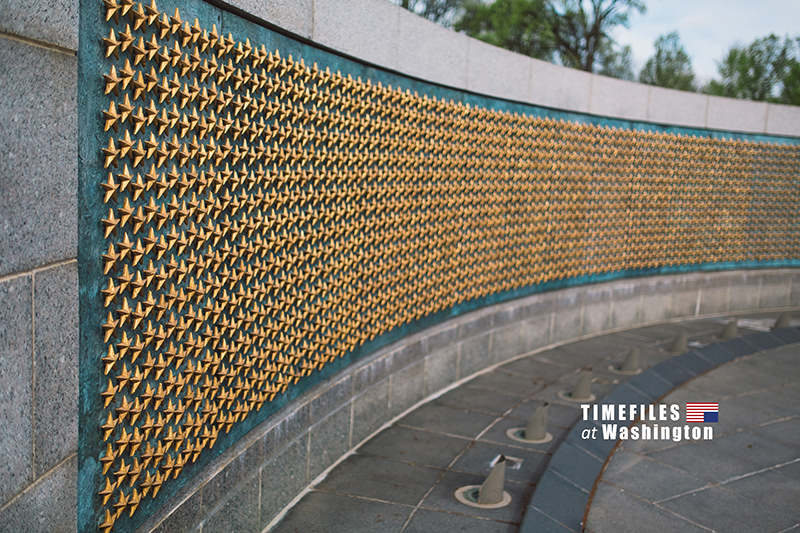 正对林肯纪念堂 的方向,有一面镶满了五星的墙,每一颗星代表了四千多名在二战中牺牲的美国 士兵