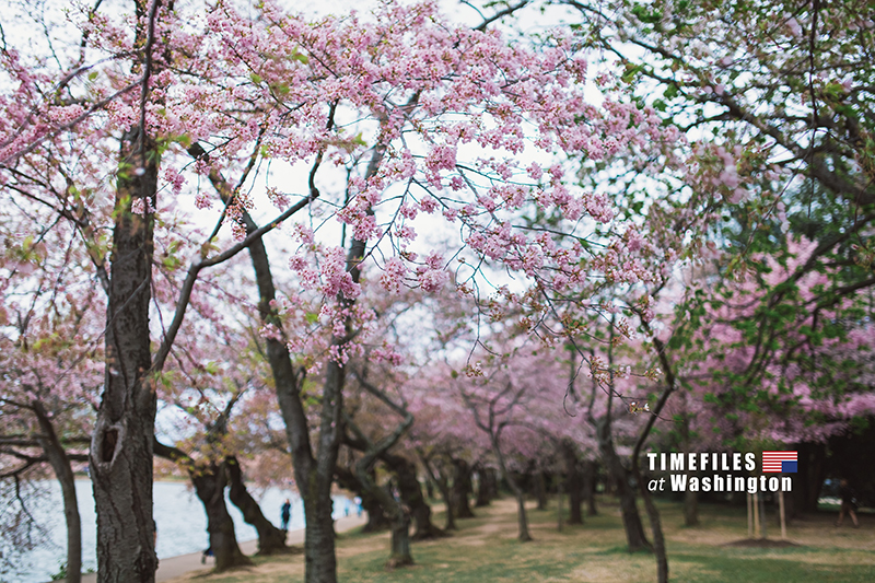 趁着天色尚早,我们又沿着潮汐湖 绕行,看看还能不能拍到蓝天下的樱花。
