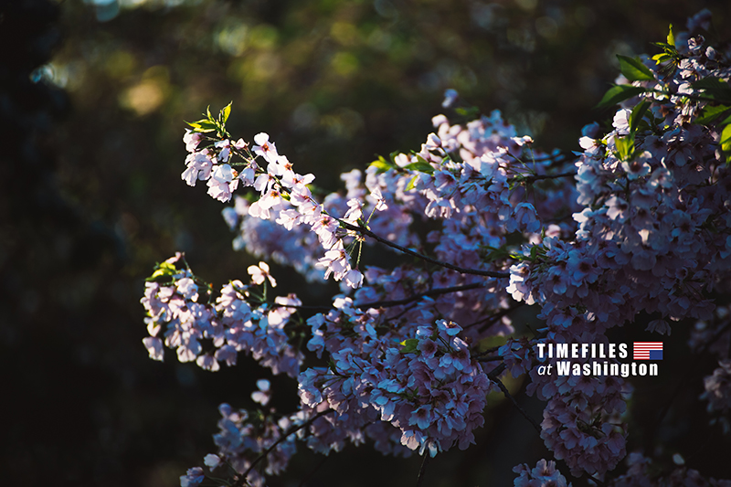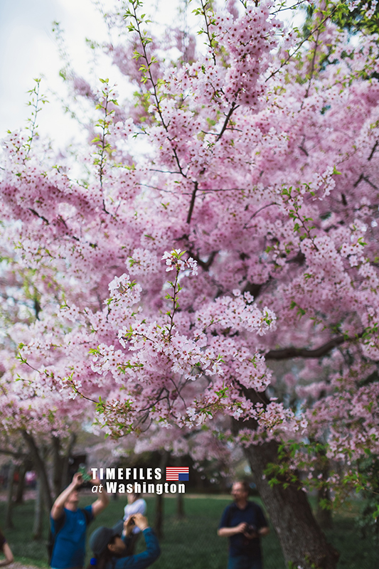 我在猛拍樱花树,完全不顾潮汐湖 畔的模特