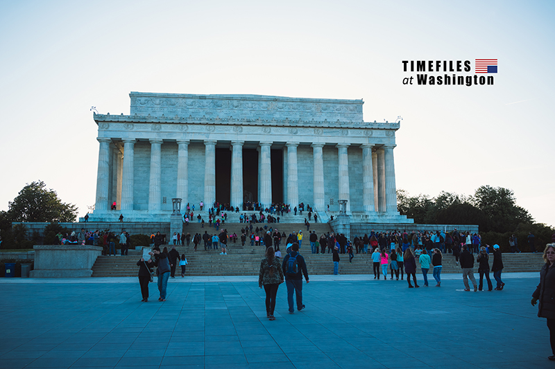 尽管天色将晚,林肯纪念堂 前还是有大批的游客