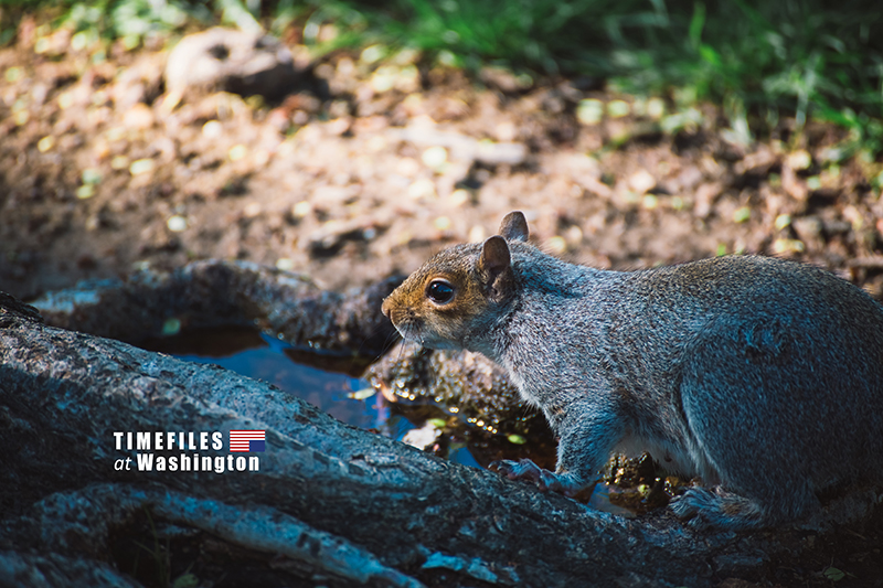 坐地铁到 Metro Center 站,出来就是中轴线上的博物馆和绿地。今天阳光不错,草地上很多大松鼠,这一只正在享用昨天的雨水