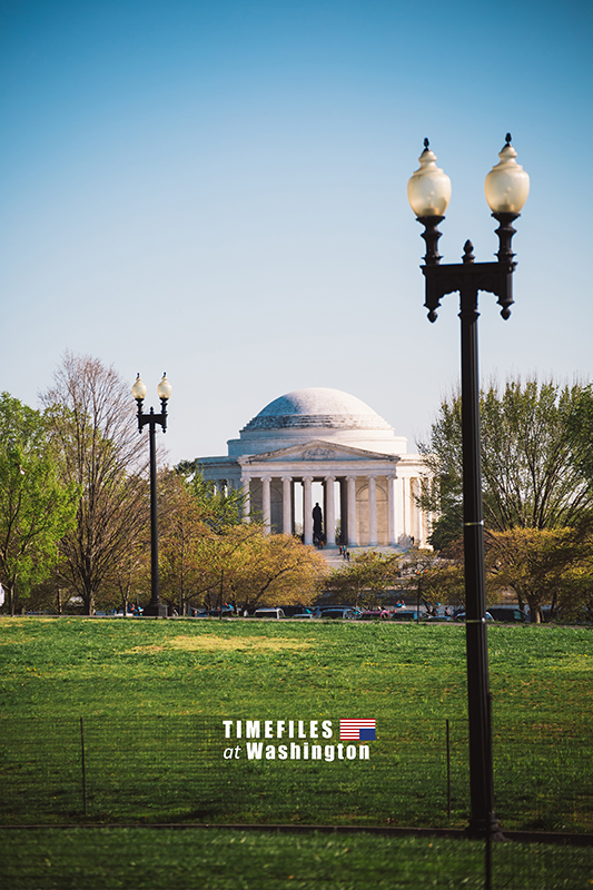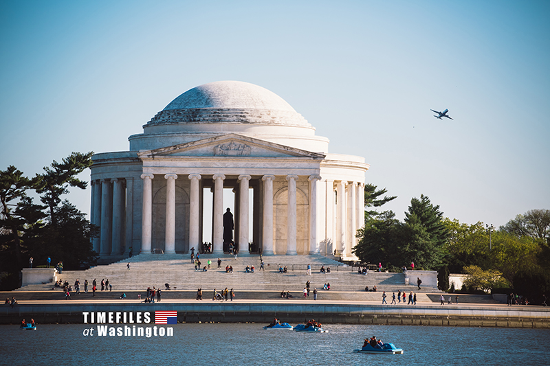 杰佛逊纪念堂后面,正好是里根国际机场 的起飞跑道。每隔五分钟,就有一架飞机从杰佛逊纪念堂后面飞过