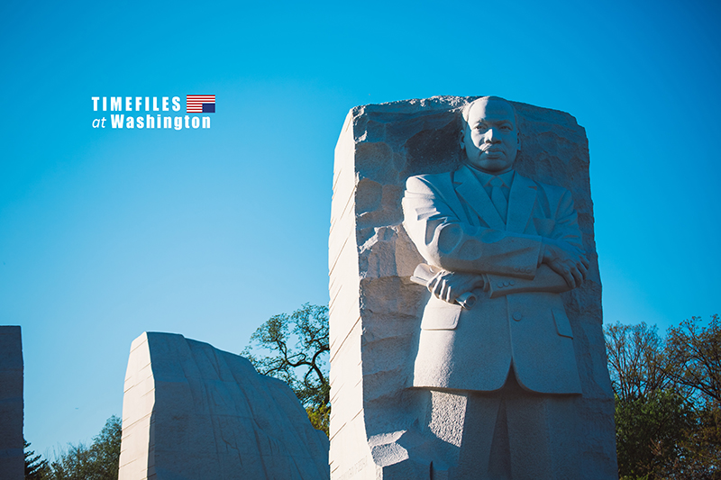 不远处是马丁路德金纪念园 ,这位伟大的人权领袖、诺贝尔和平 奖获得者,曾经就在这片土地上,在林肯纪念堂 前,发表了“I have a dream”的著名演讲。如今,马丁路德金就静静的站在这里,注视着这里的四千万非裔美国 人。
