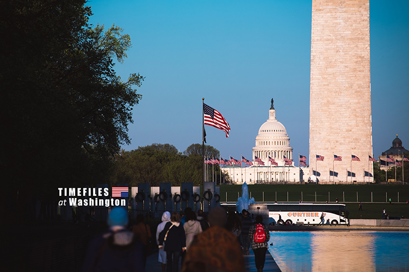 美国东海岸 的夏令时,太阳正好从林肯纪念堂 的背面落下去,远在亚洲 的北京 ,此时此刻,太阳正缓缓从地平线上升起
