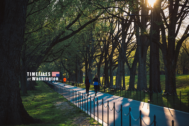 沿着夕阳往林肯纪念堂 走,小路上游客不多,但跑步的不少