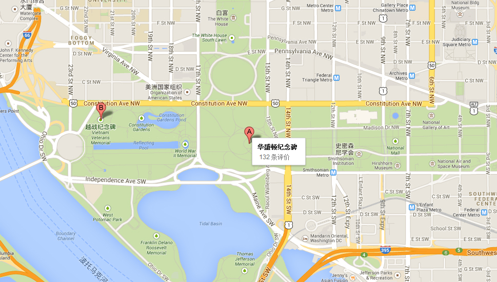 这个方向开始出现高楼大厦,拍摄华盛顿 中轴线的最佳摄影点应该就在对面的大厦上