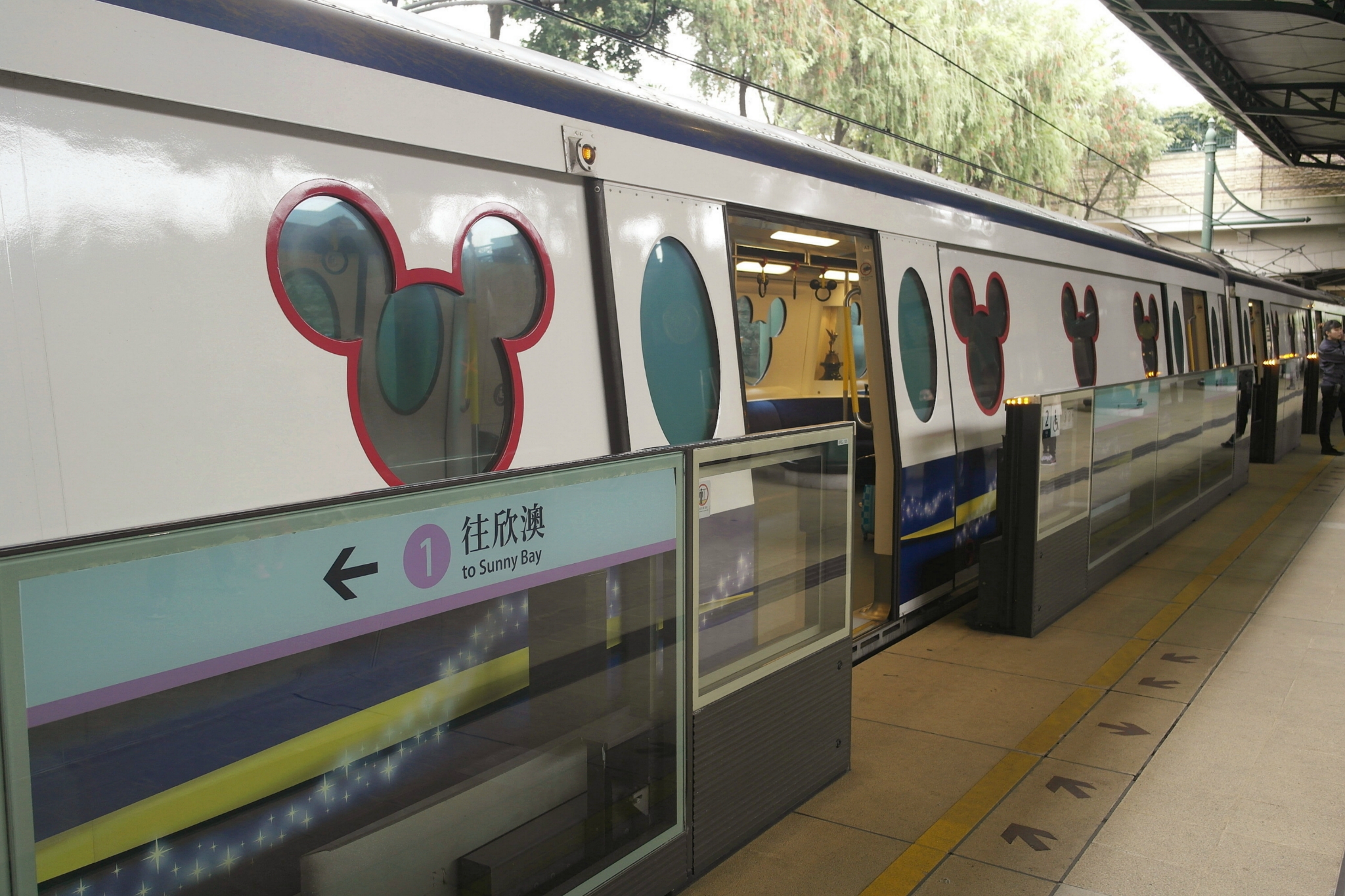 由欣澳往迪士尼 港铁为迪士尼 线,这趟列车到处都是micky 的 logo