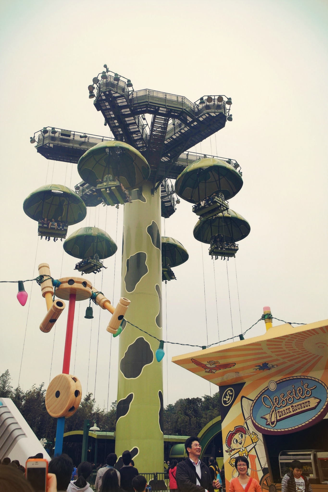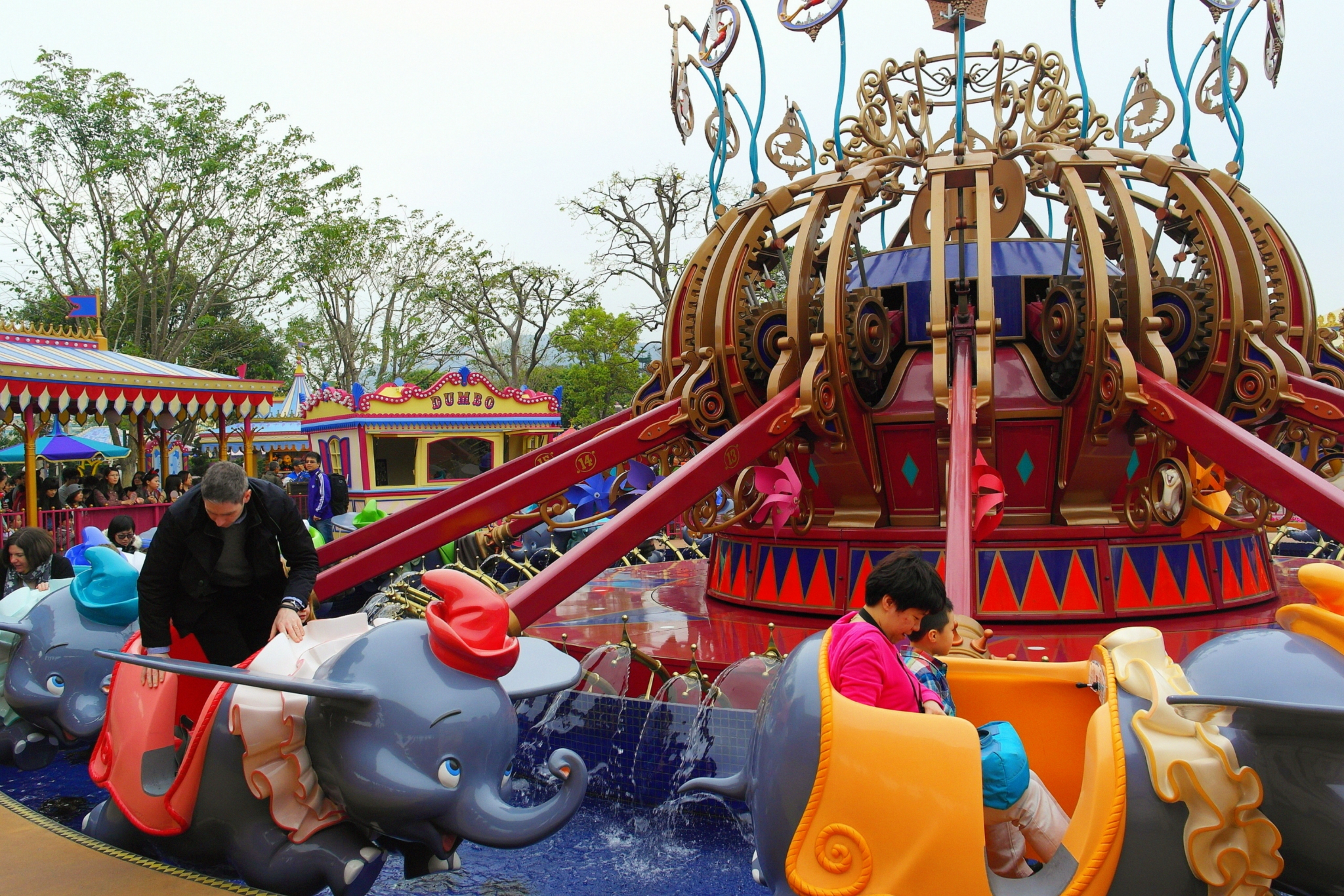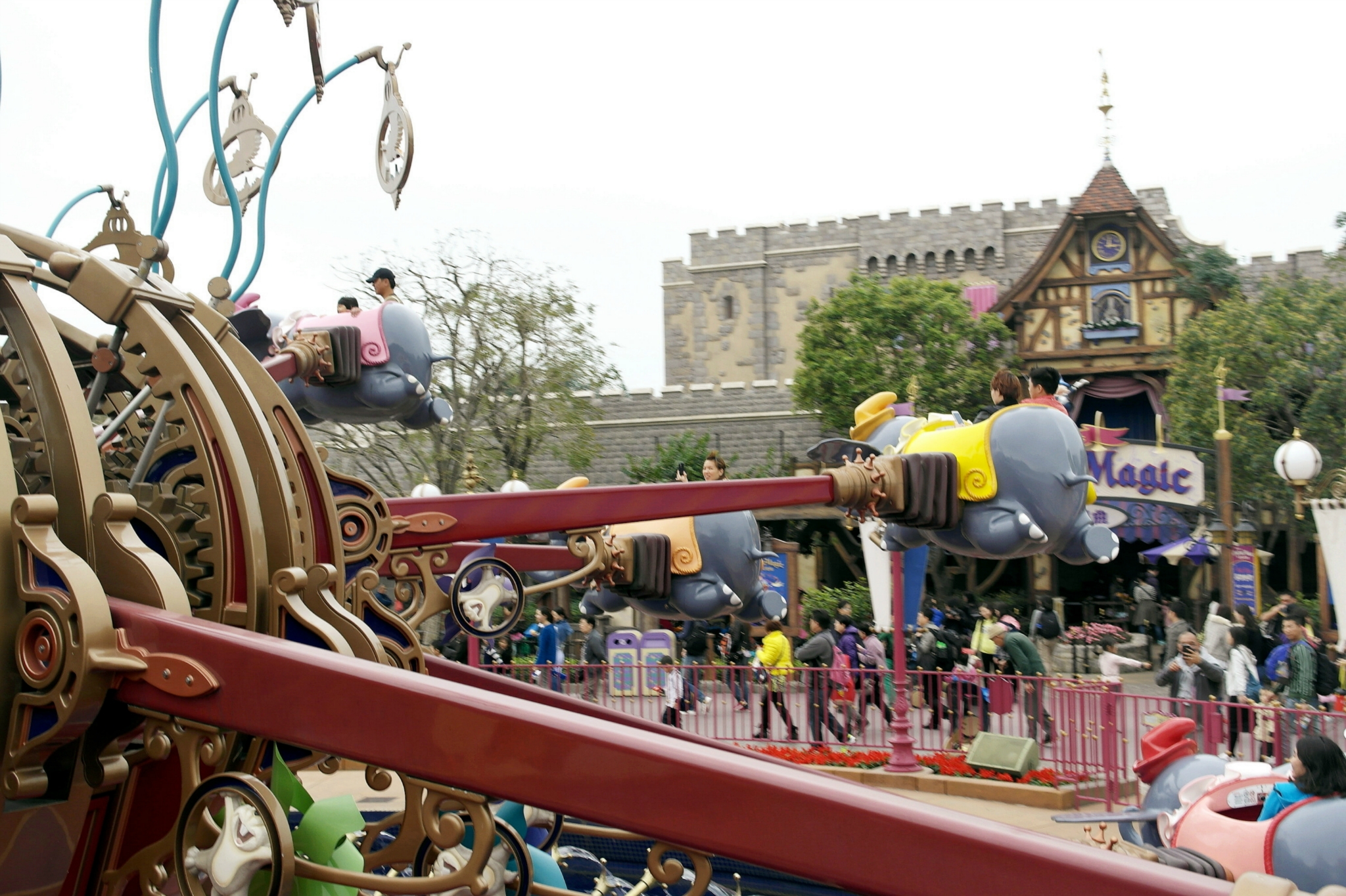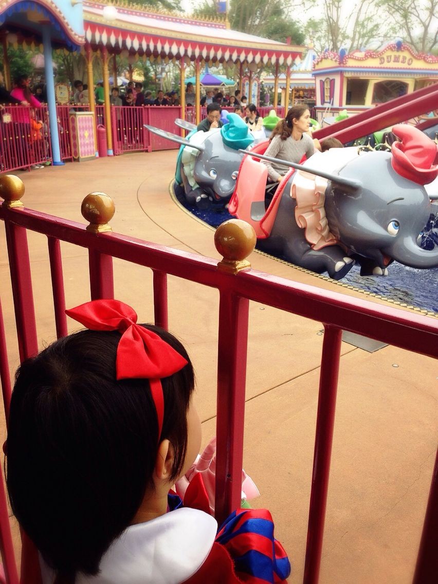 话说这个幻想世界的小飞象旋转世界,真心热门。。。排队等了好久,迪士尼 一天能玩完,时间大概都浪费的在排队身上,所以大家合力安排时间,fastpass(提前预约排队,换取的一张纸质的票,大概是假如你1点出这张fastpass,你要在2-3点之间把这项娱乐项目用掉,期间不用排队)不是所有的项目都用,这个门口的免费地图会有标示。