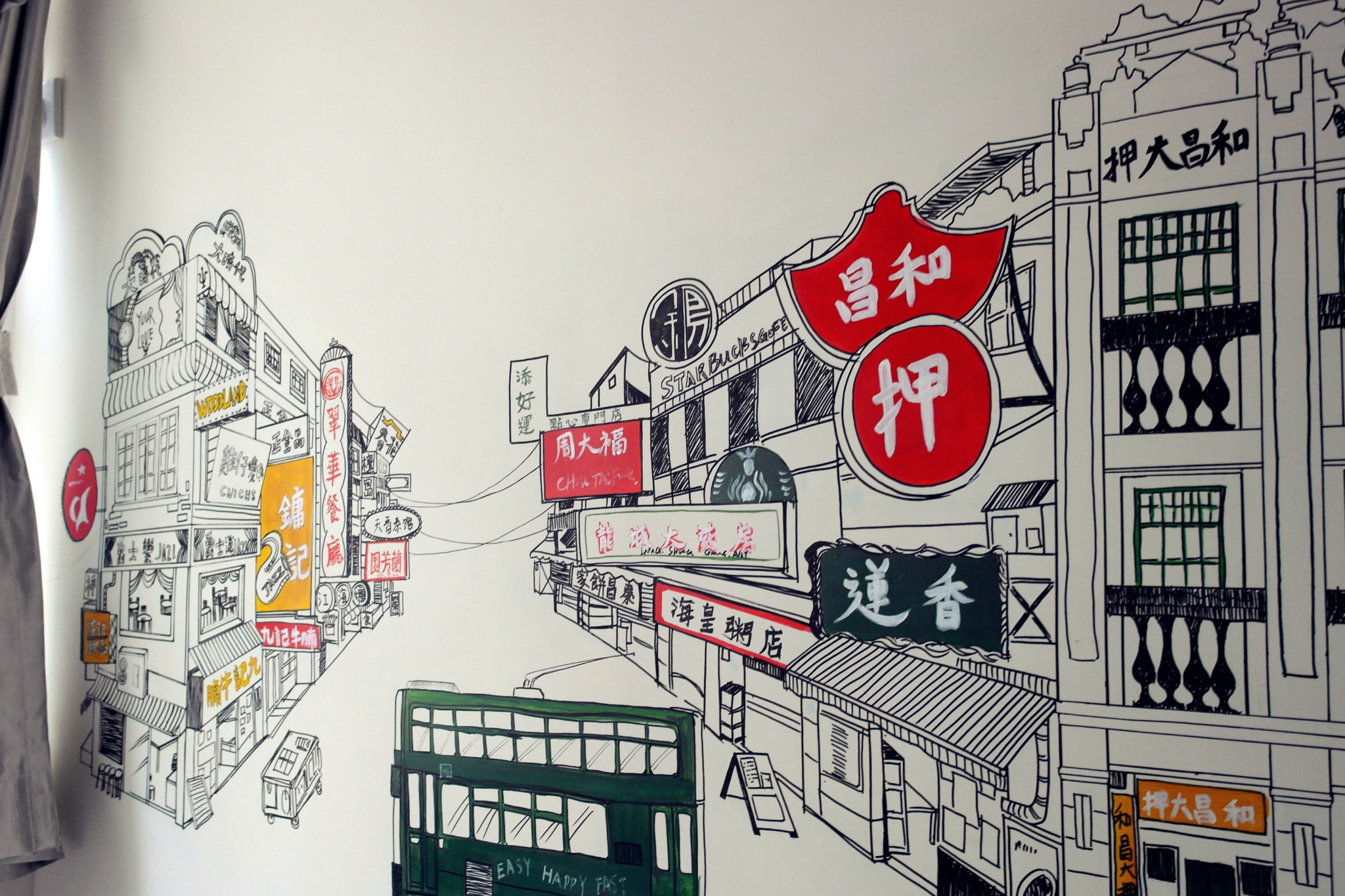 这幅画下就是拍摄《花样年华》梁朝伟和张曼玉坐过的地方,有人已经坐下。。。远远的拍一张