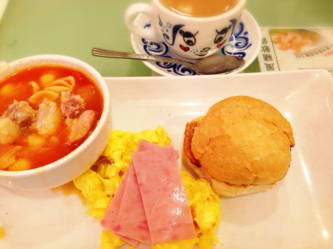 这天早上在荃湾广场 的点一龙解决的,点一龙完全是被程式化了的港式茶餐厅。。。环境很好小贵