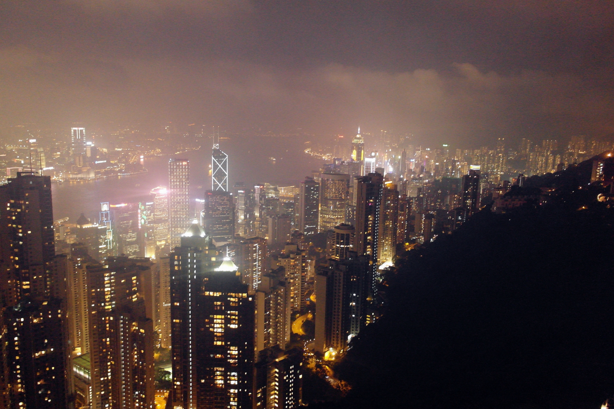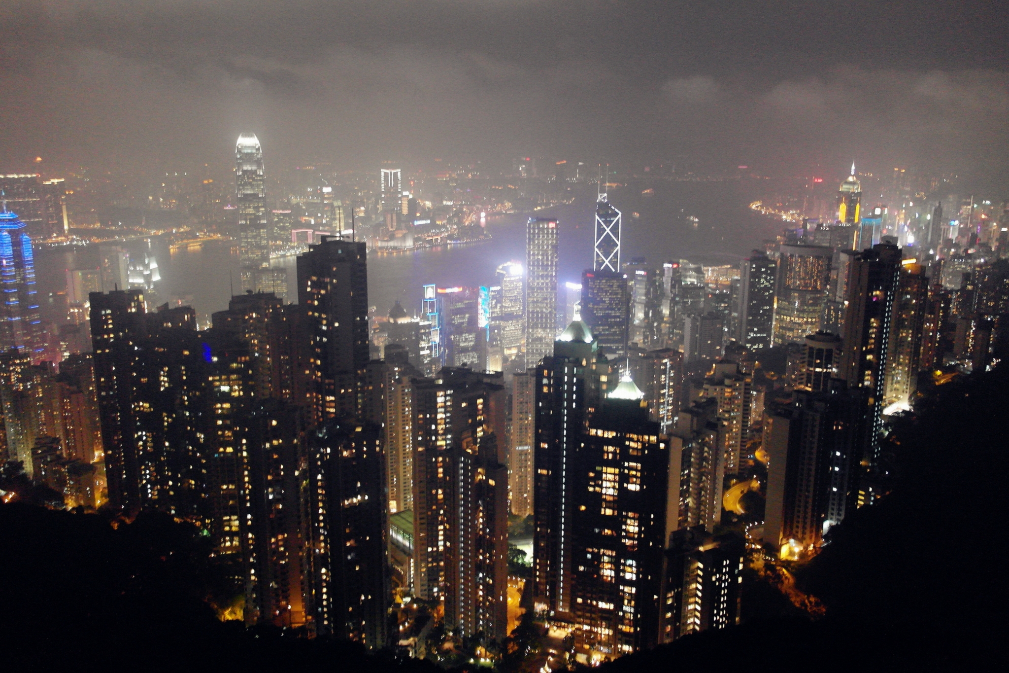 航拍下,远处有点雾气。。。但是这绝对是有生以来看过最美的夜景,那句话对是对的,没来太平山 顶看香港 夜景,根本就不算来过香港 。。。