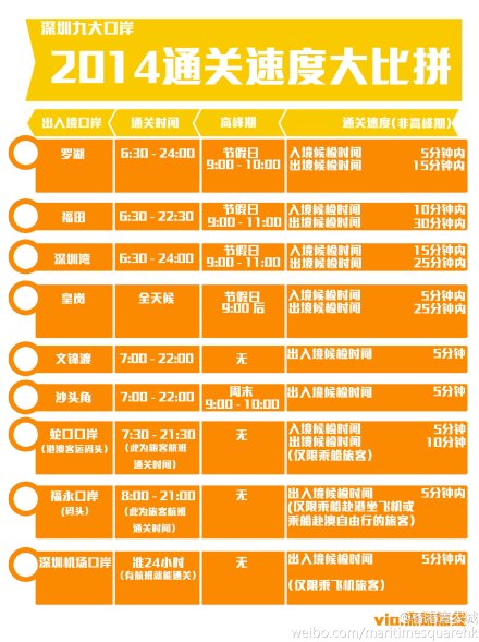 我们选的是春秋航空到深圳 ,在深圳 湾口岸过关。深圳 湾口岸是距离深圳 宝安机场最近的过关口,比较节约时间!下面是其他几个过关口的具体情况大家参考下。。。