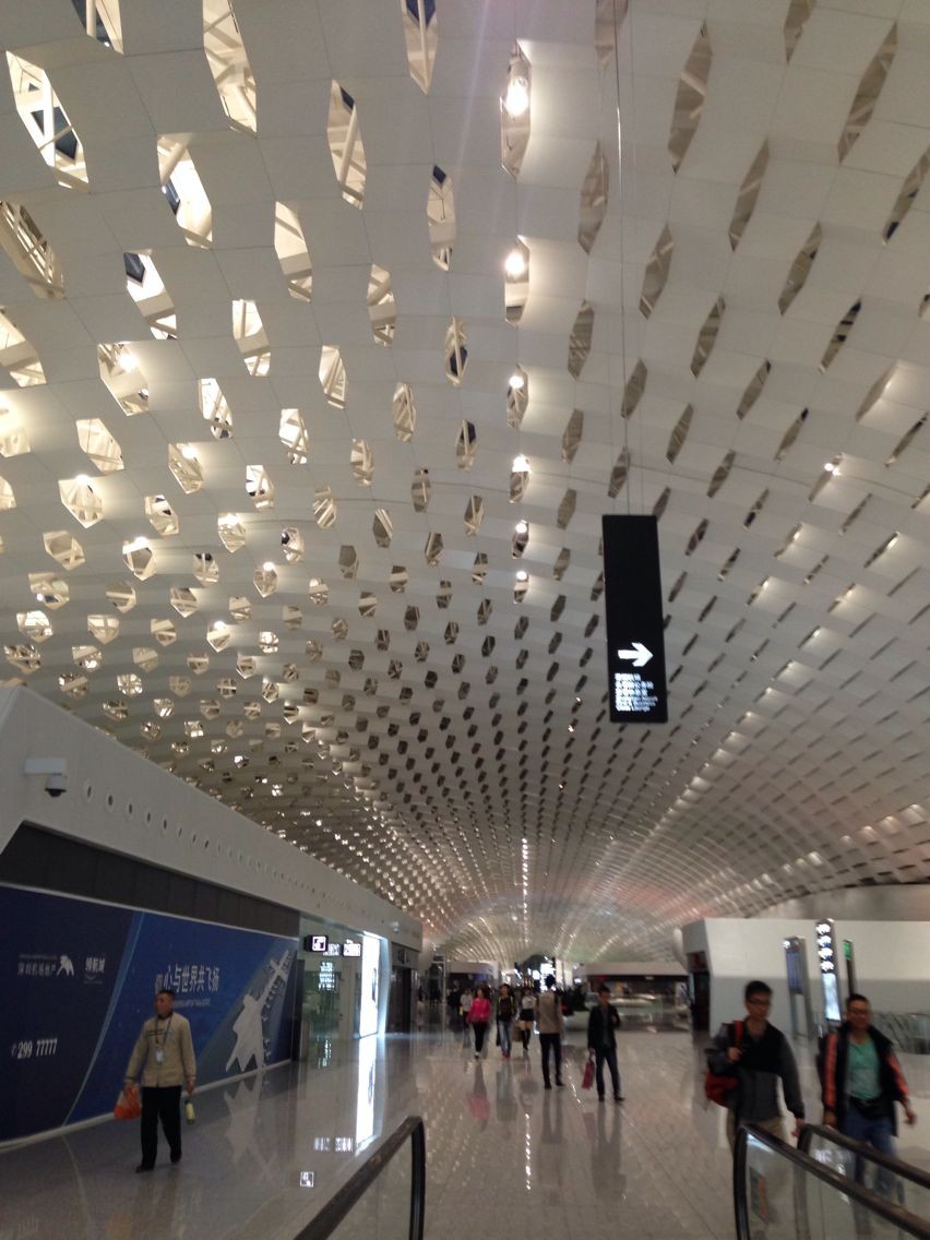 深圳 宝安机场新建 好的,很大很高大上。。。不过和网上说的一样密集恐惧症重症患者就表来了。。。到处的密集感,像马蜂窝。。。