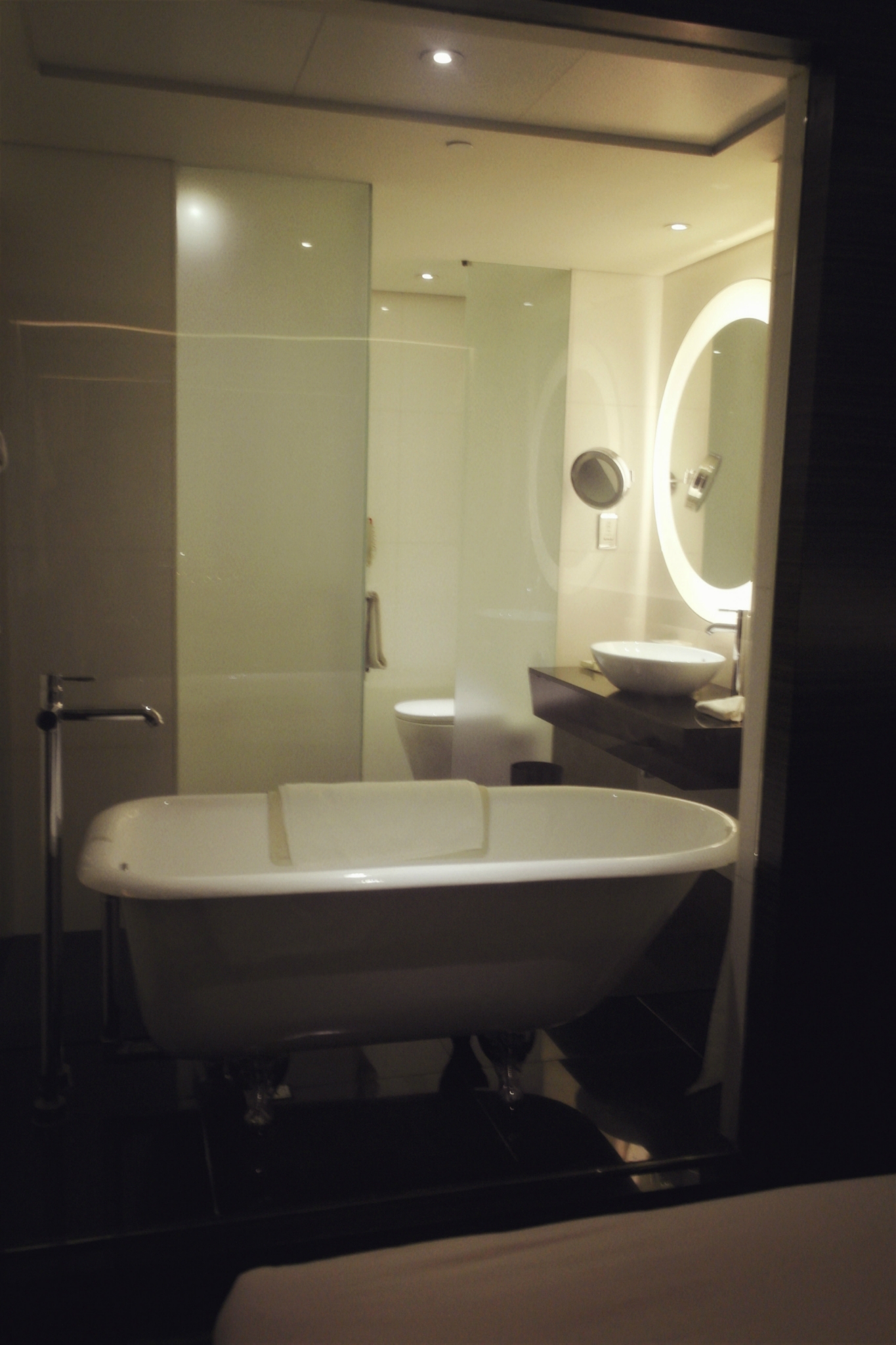 房间干净整洁,落地窗可以观赏香港 夜景。。。