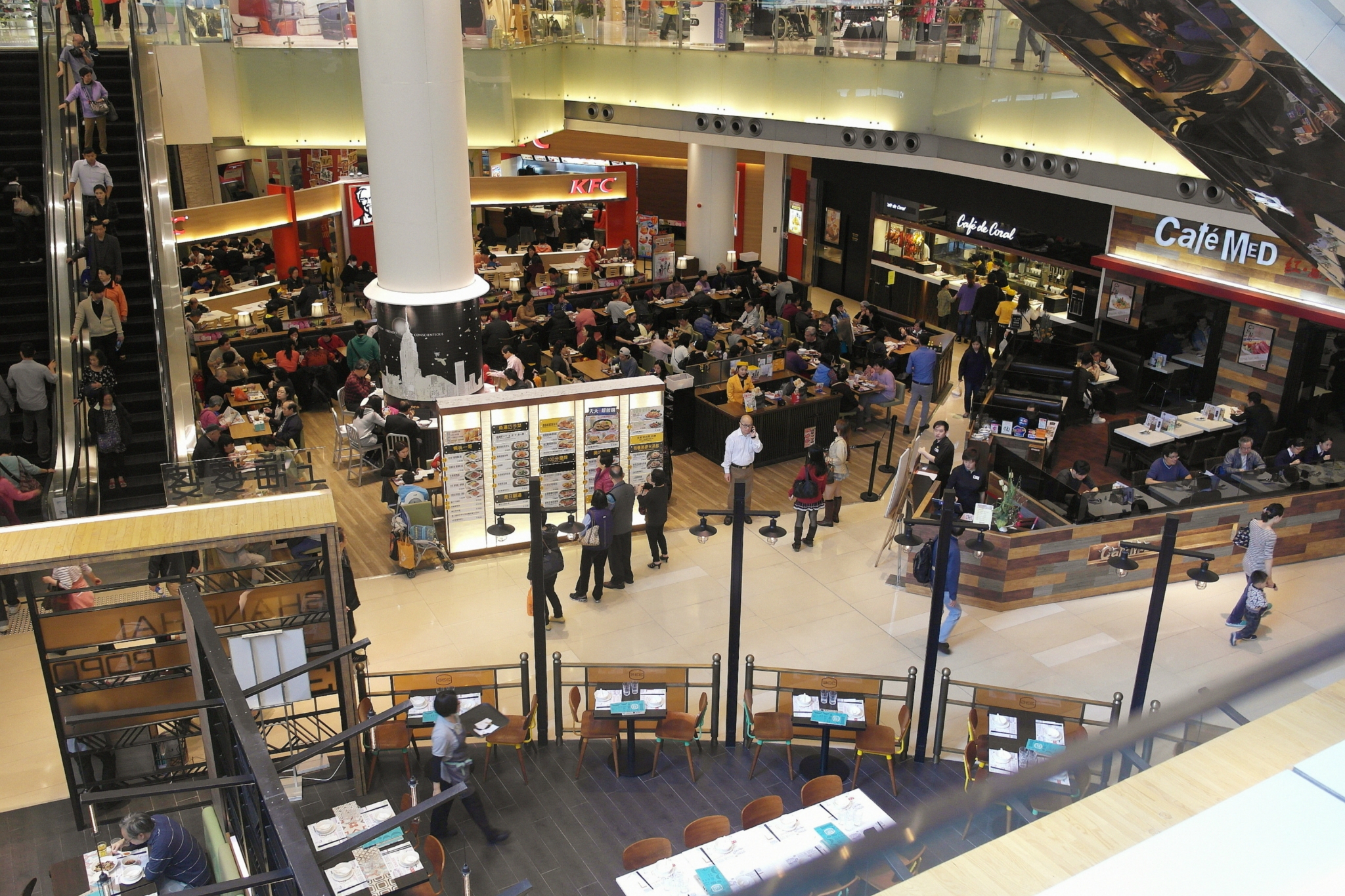 希慎广场可以坐滚梯到达,诚品书店 的,这个滚梯是1F-4F,坐两个加一层到达9楼。大概是我见过最长的室内滚梯了。。。诚品书店 为希慎广场的8-10F