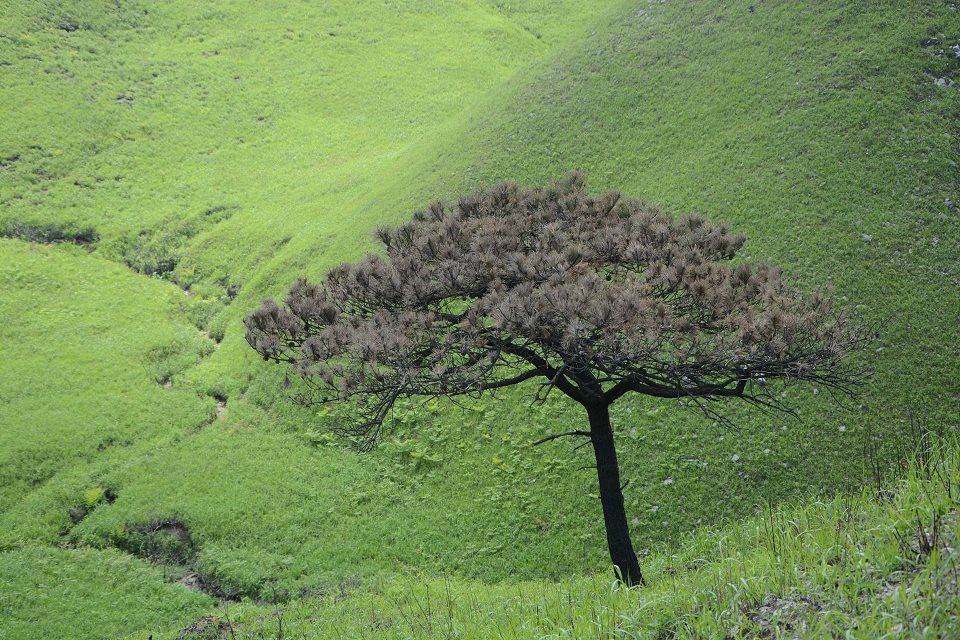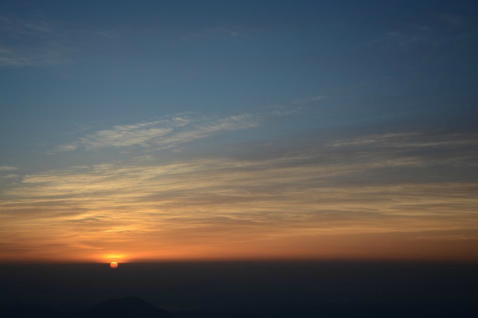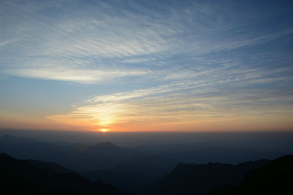 第二天清晨高空明月依然在头顶洗漱后走到山顶观赏人生中第一次日出,很美。今天的目标是发云界,徒步时间为7小时30分左右,今天的路程是比较辛苦的,但风景也是最美,一路上都是充满生机勃勃草甸和蓝天白云与你相伴心境美无法用言语表达。路上需要穿越数10个绝望坡所谓绝望坡就是让你对武功山彻底兴趣因为你不会知道前方还有多少个陡峭的山坡在等着你,路上我想过放弃,放弃意味着往回走想到这里我感觉到如果这样那我前面所做的一切都付之东流我很不甘心,仍然背上20公斤的背包继续前行!在这里穿越每个人只能靠必胜的信念去坚持自己能够走下去,当你做出这个决定的时候你已经没有了退路,只能前行。路上我们蹭了一个向导所以不用担心会走迷路,路上向导陪我们聊天,讲他们那个年代的故事,给我们指引前进的方向,感谢这位非常真誠的李向导!!下午4点左右到达发云界客栈,今晚选择住客栈因为不贵30大洋一晚上可以睡个好觉