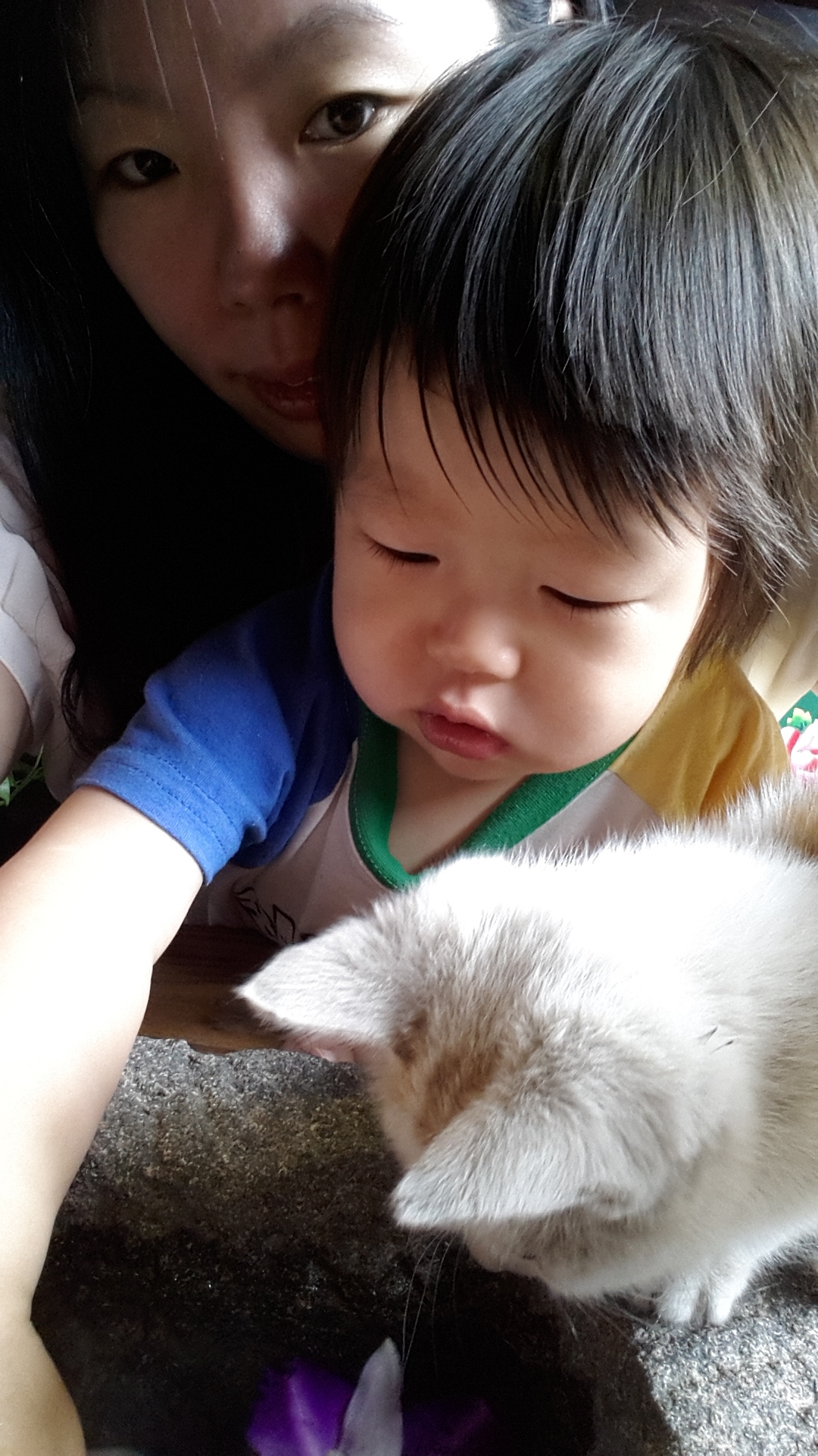 天不怕地不怕的eason竟然怕被风吹起的门帘,直往我身上爬,于是我们还是离门帘远一点吧。