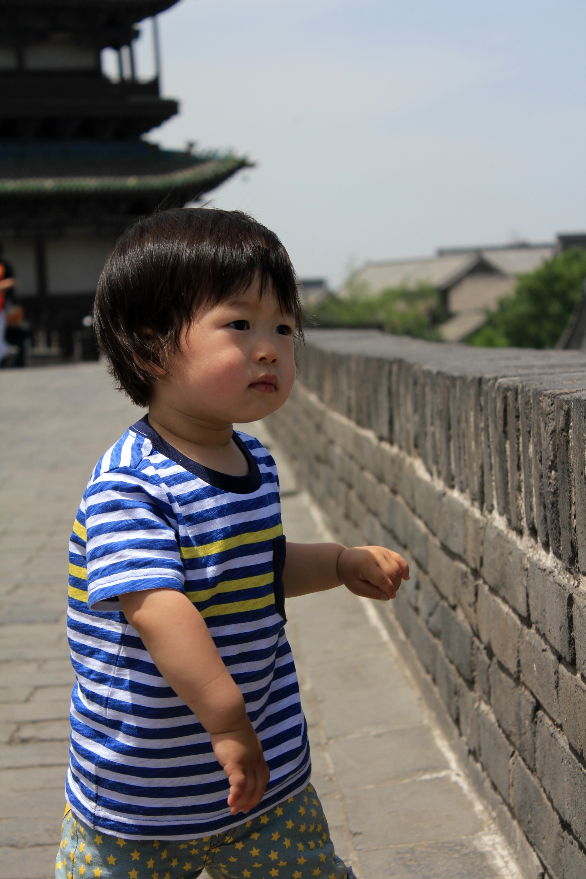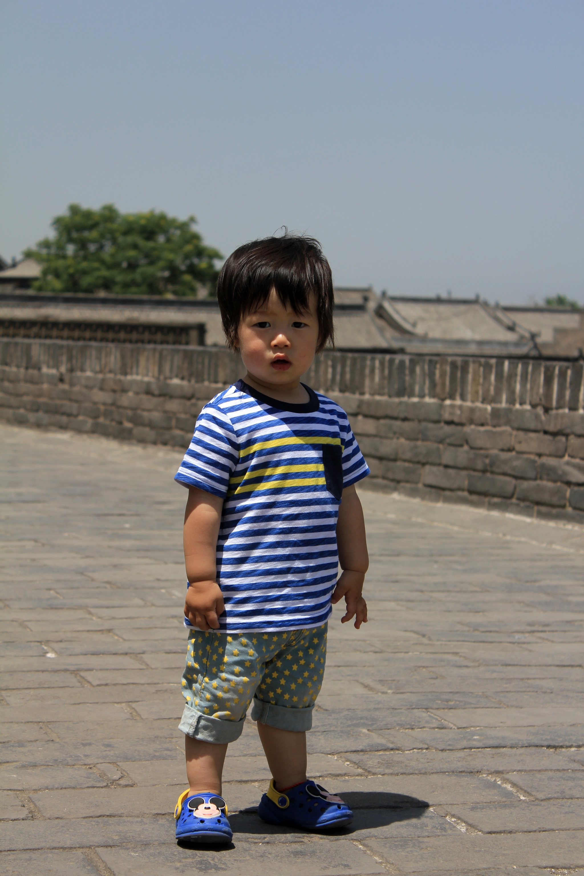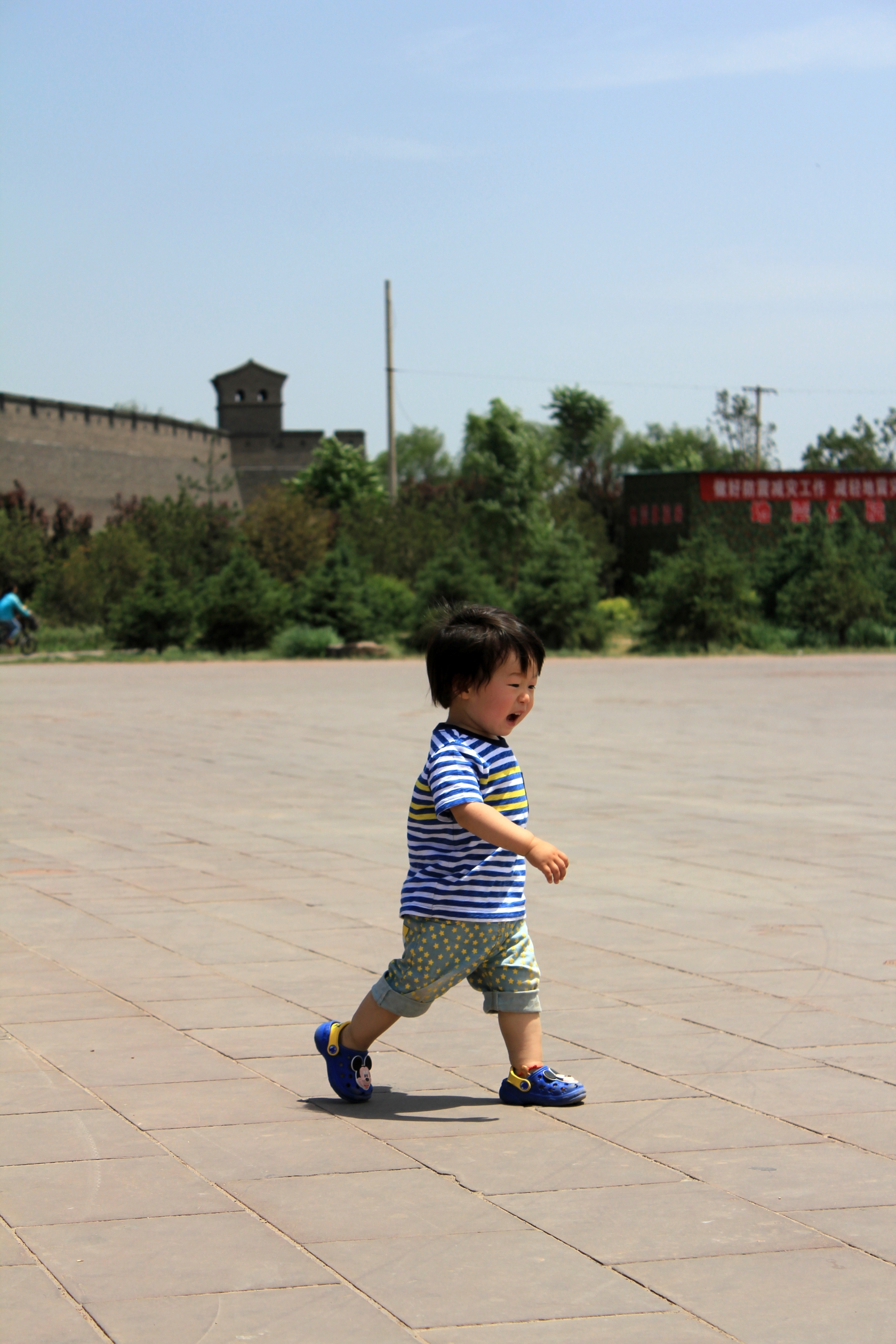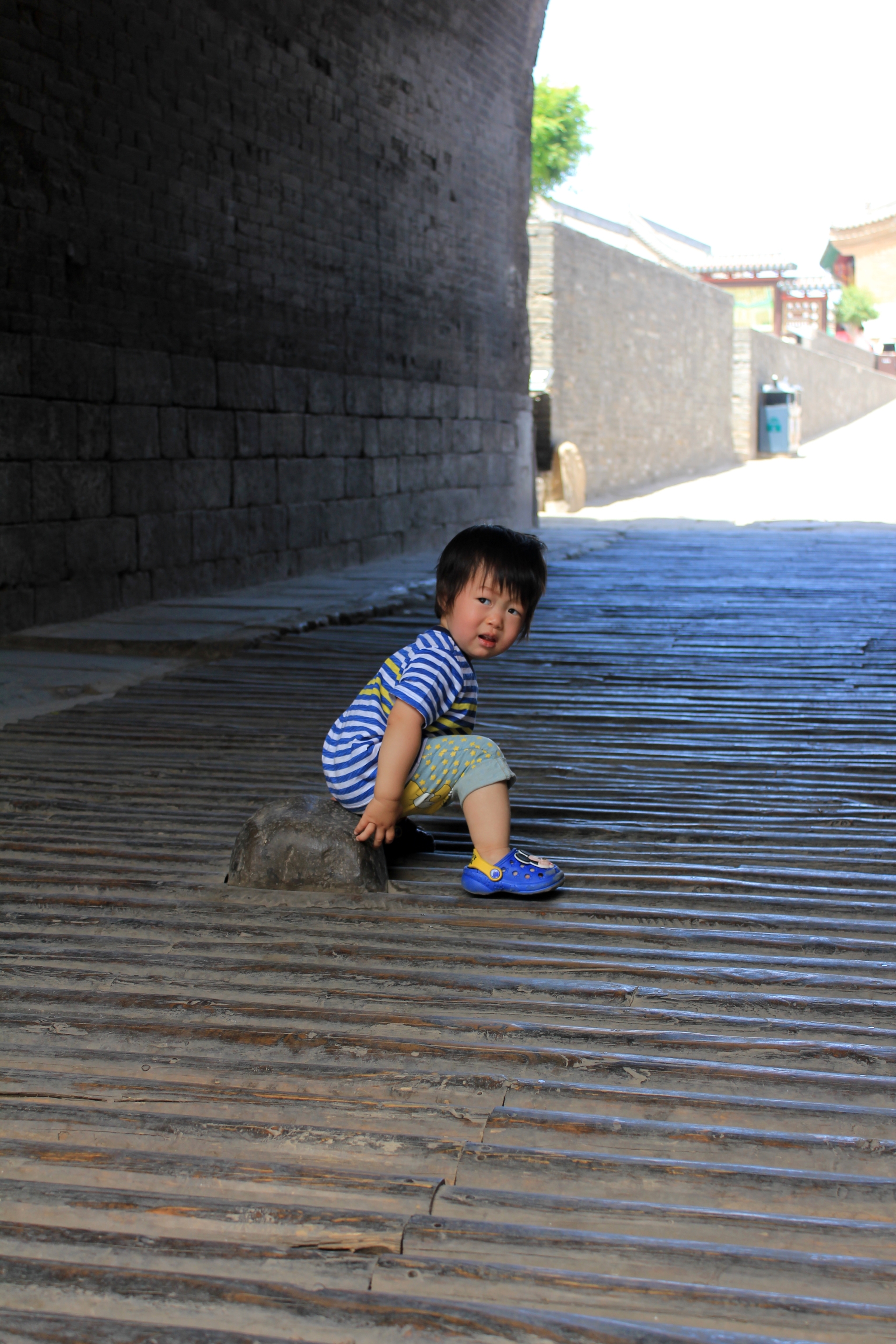 这样完整的城墙全国貌似只剩下四座了,而城墙里面是古镇的,只有平遥 一座了。上去的时候eason依旧要自己爬可是刚上去不就就困了,要睡觉了。我们只好匆匆下去,还没有下去就倒在我怀里睡着了。