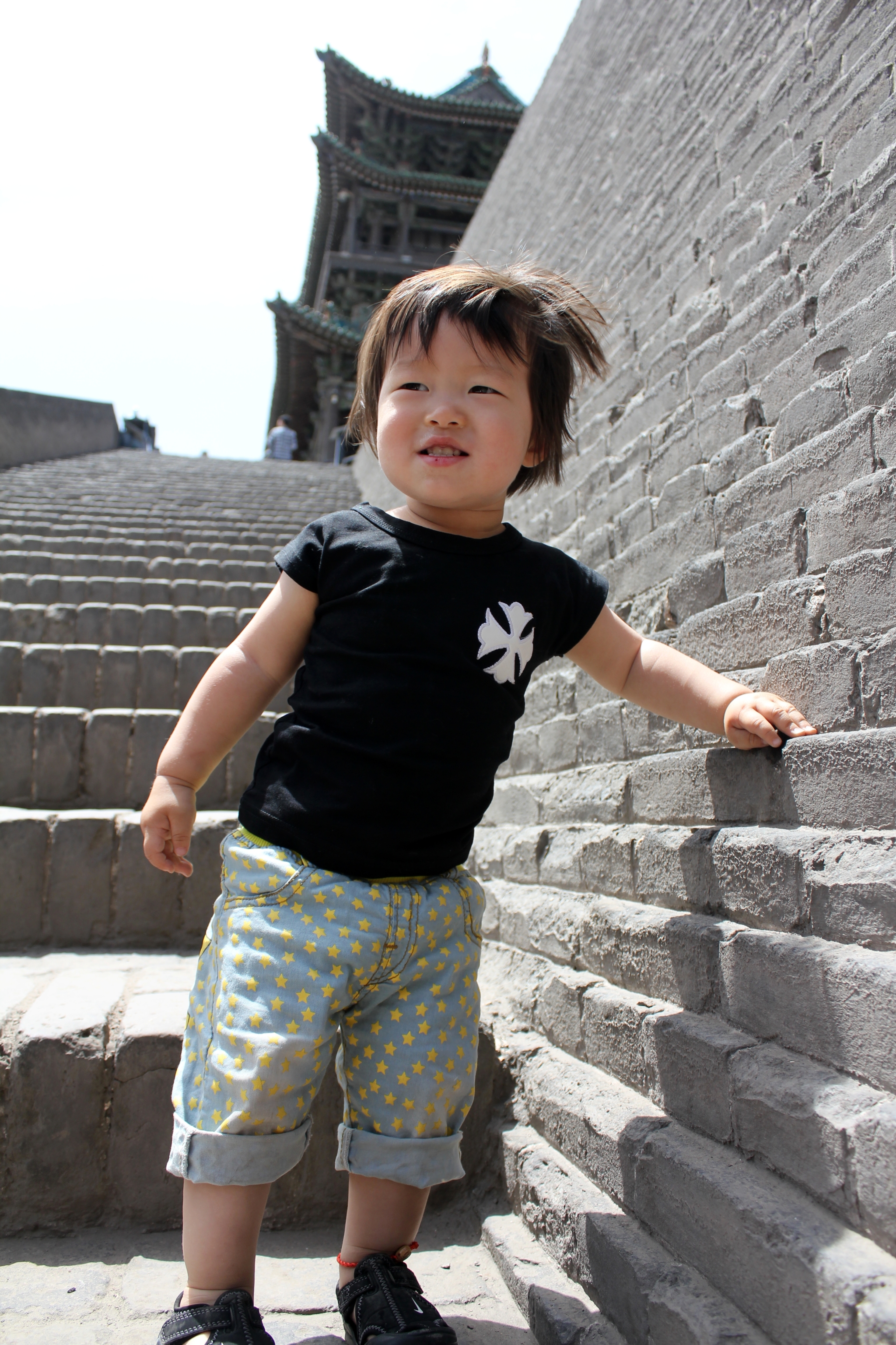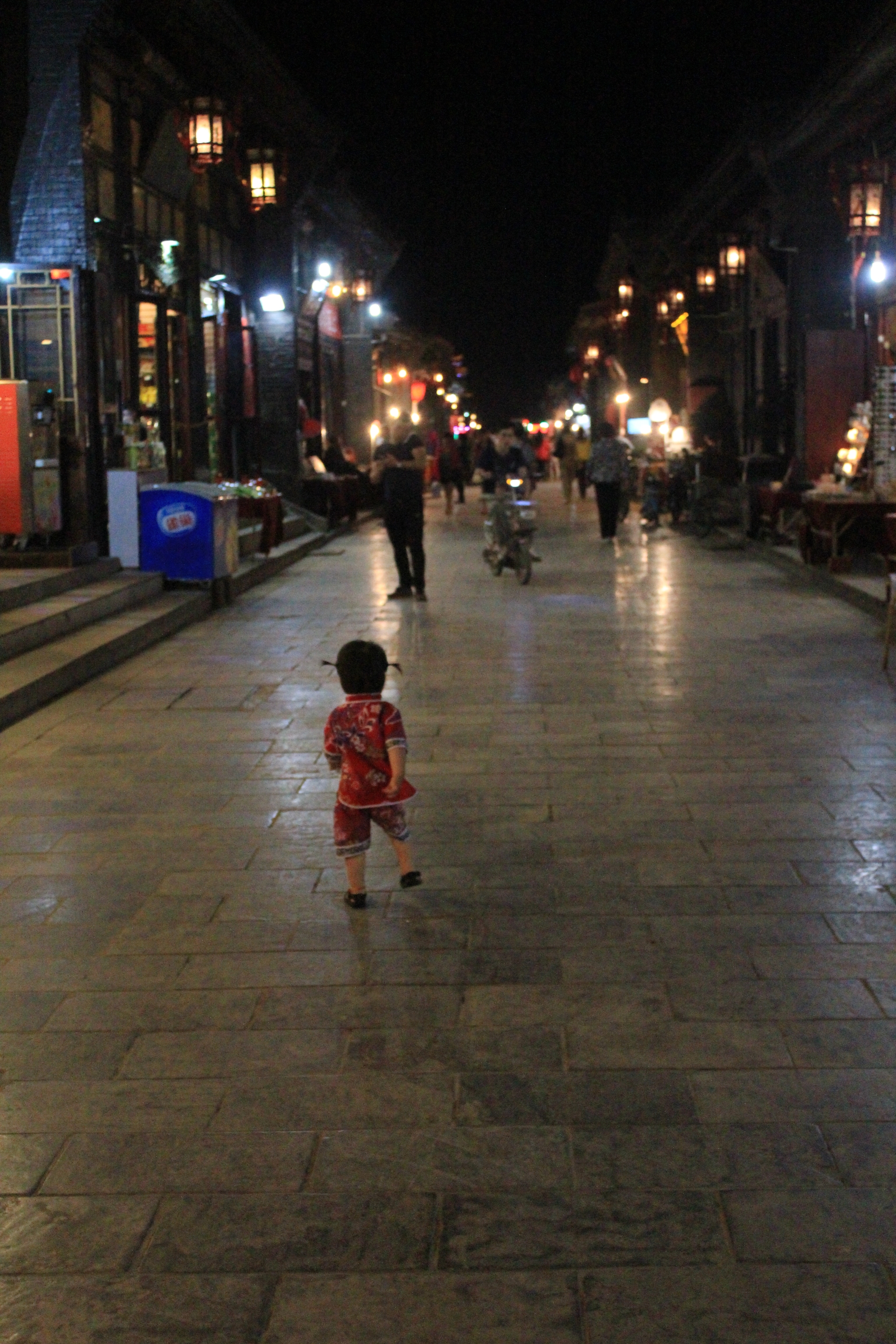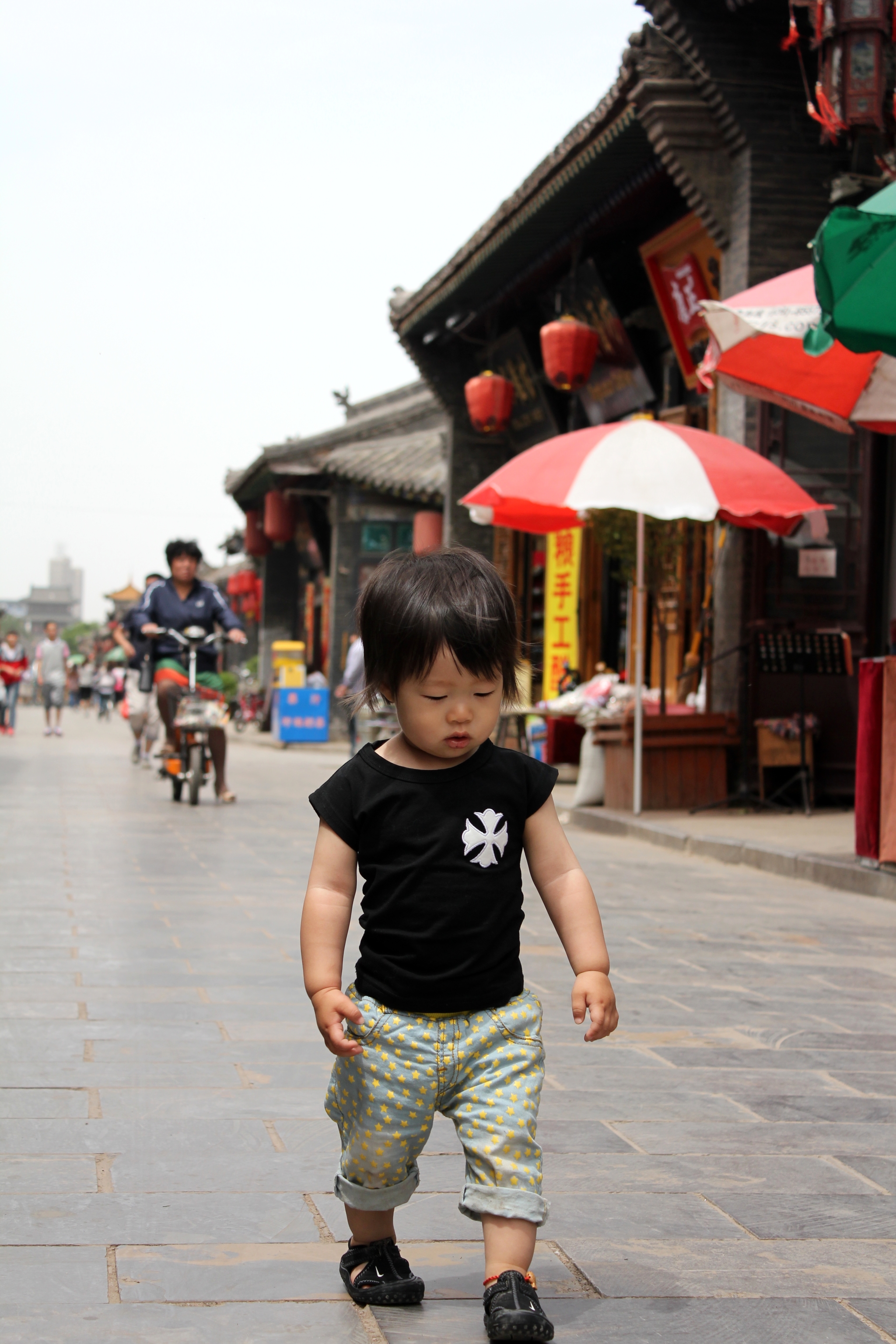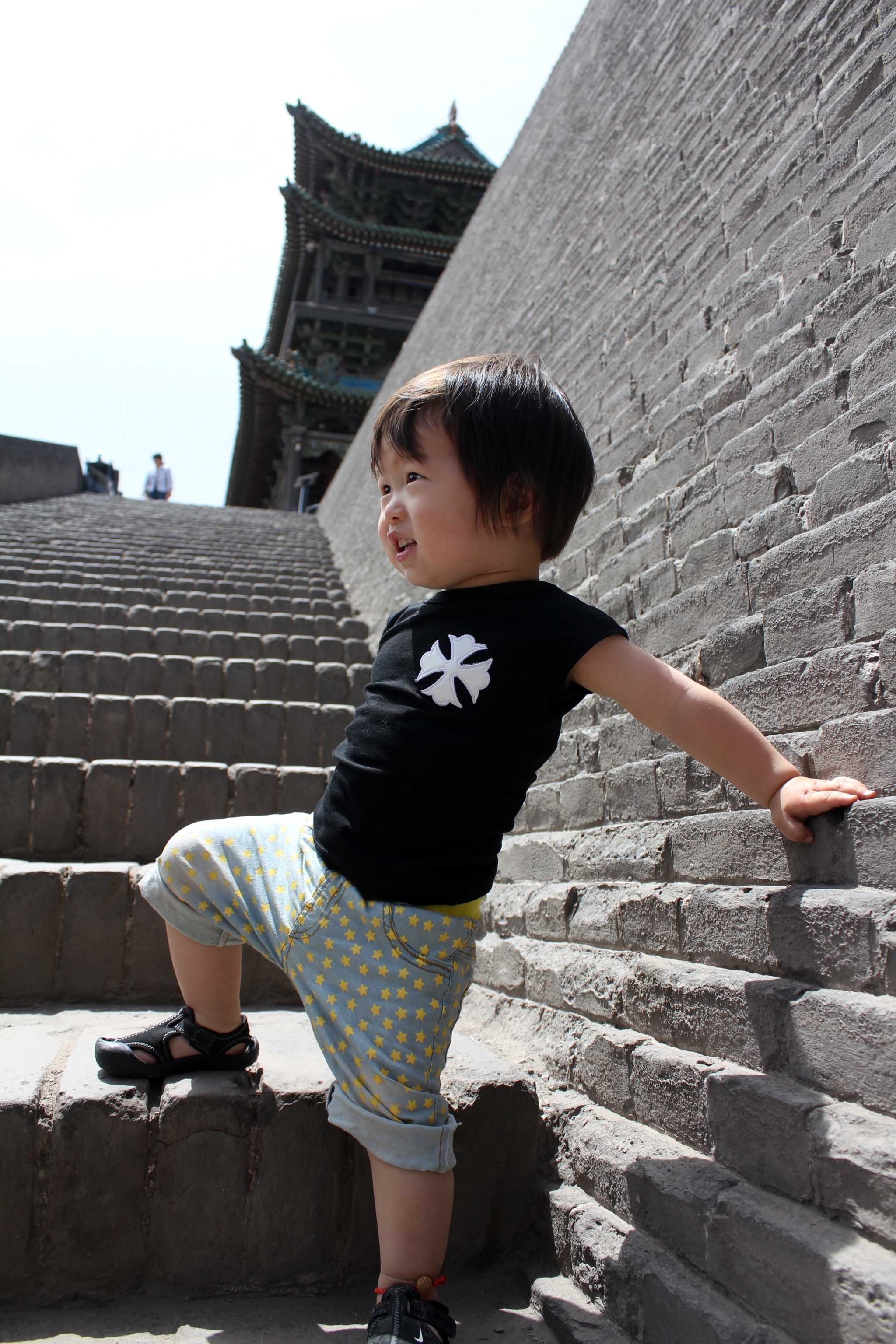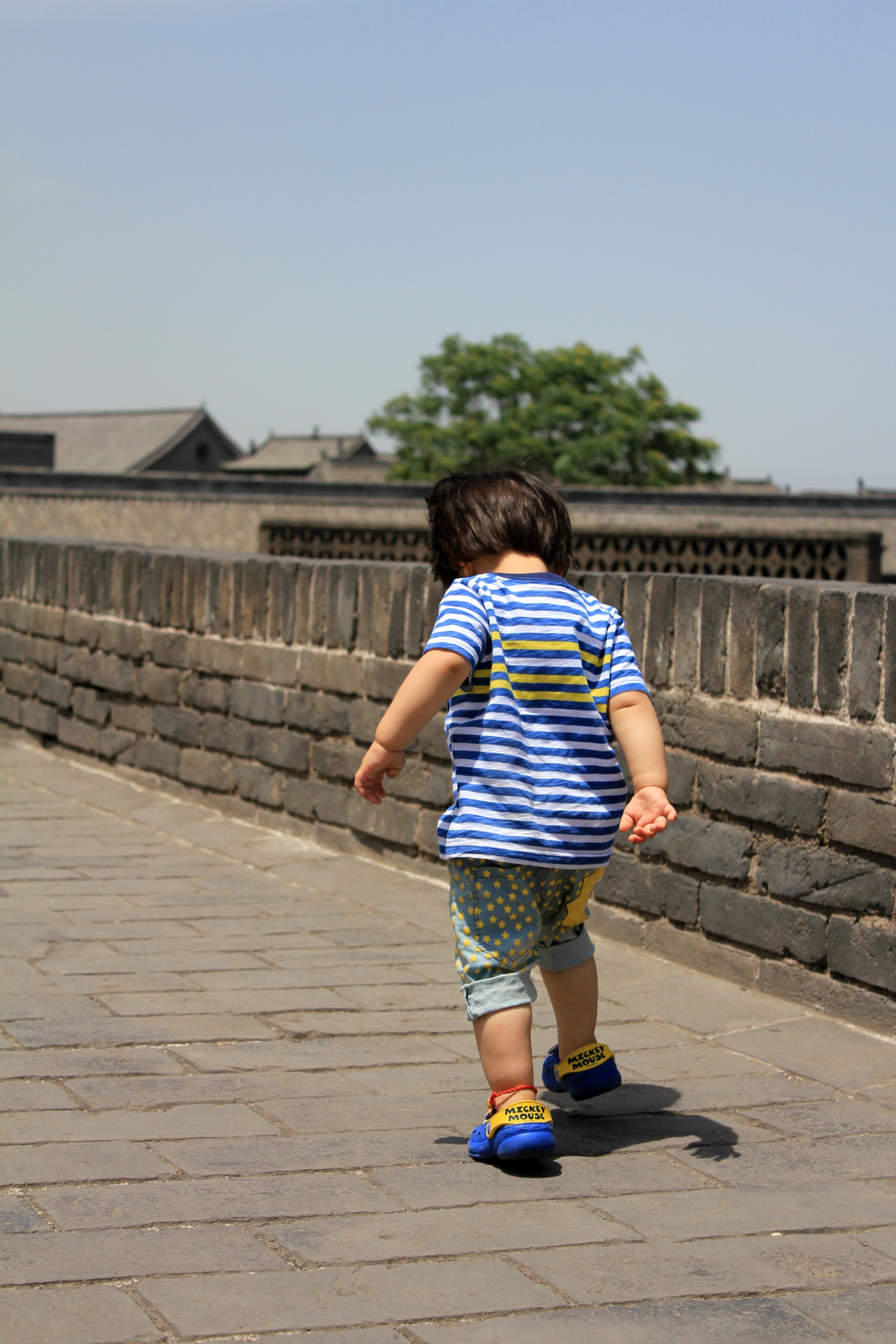 这样完整的城墙全国貌似只剩下四座了,而城墙里面是古镇的,只有平遥 一座了。上去的时候eason依旧要自己爬可是刚上去不就就困了,要睡觉了。我们只好匆匆下去,还没有下去就倒在我怀里睡着了。