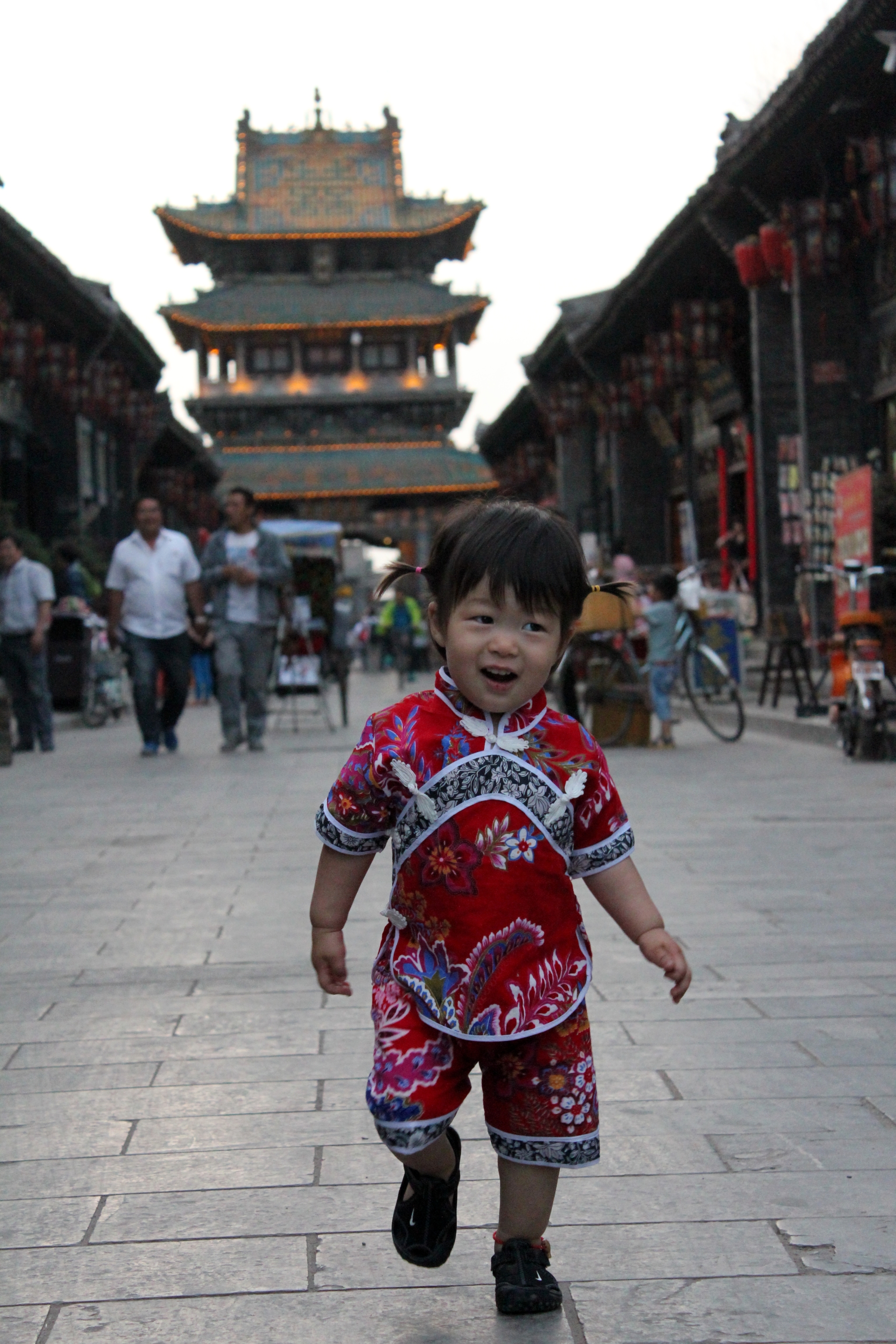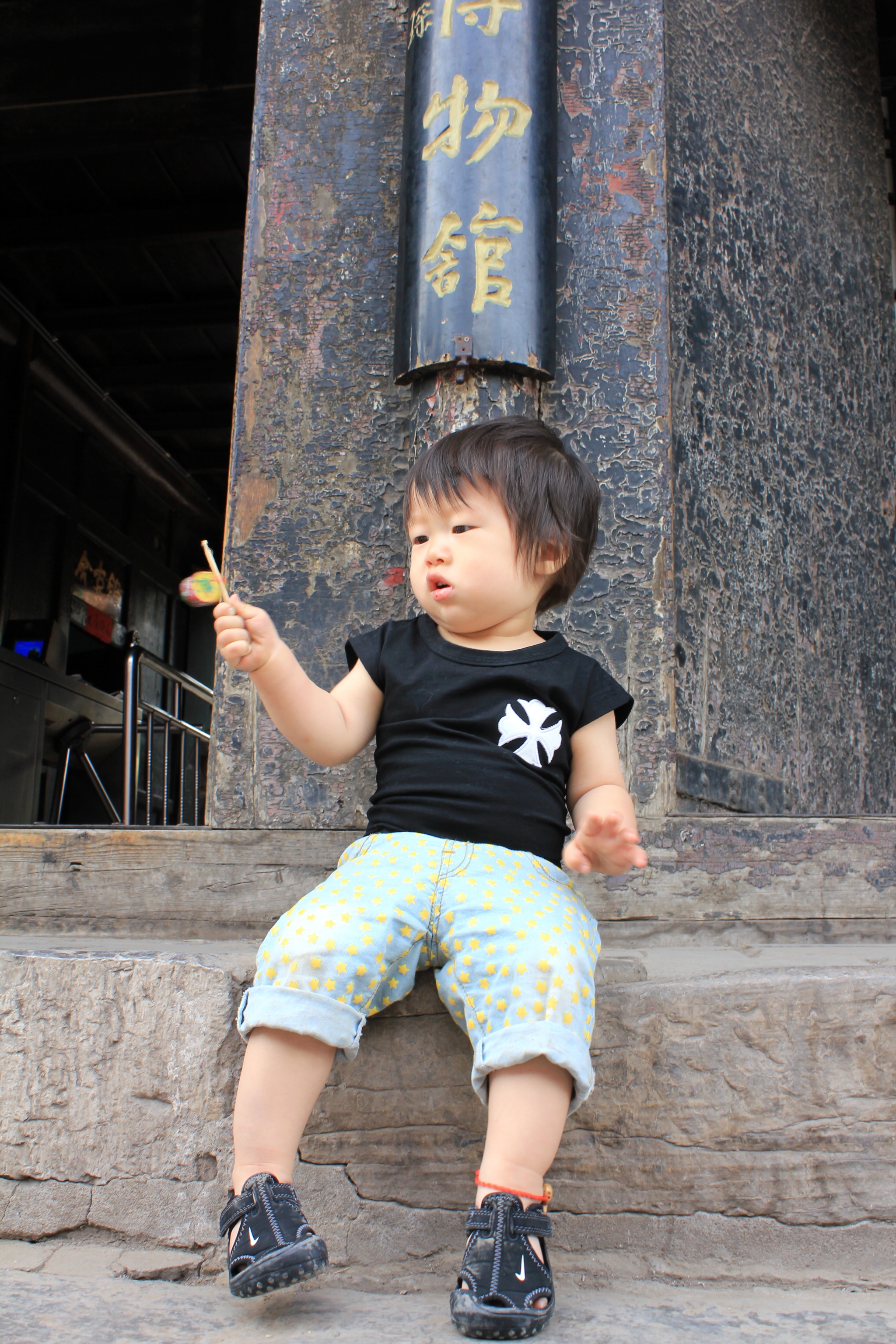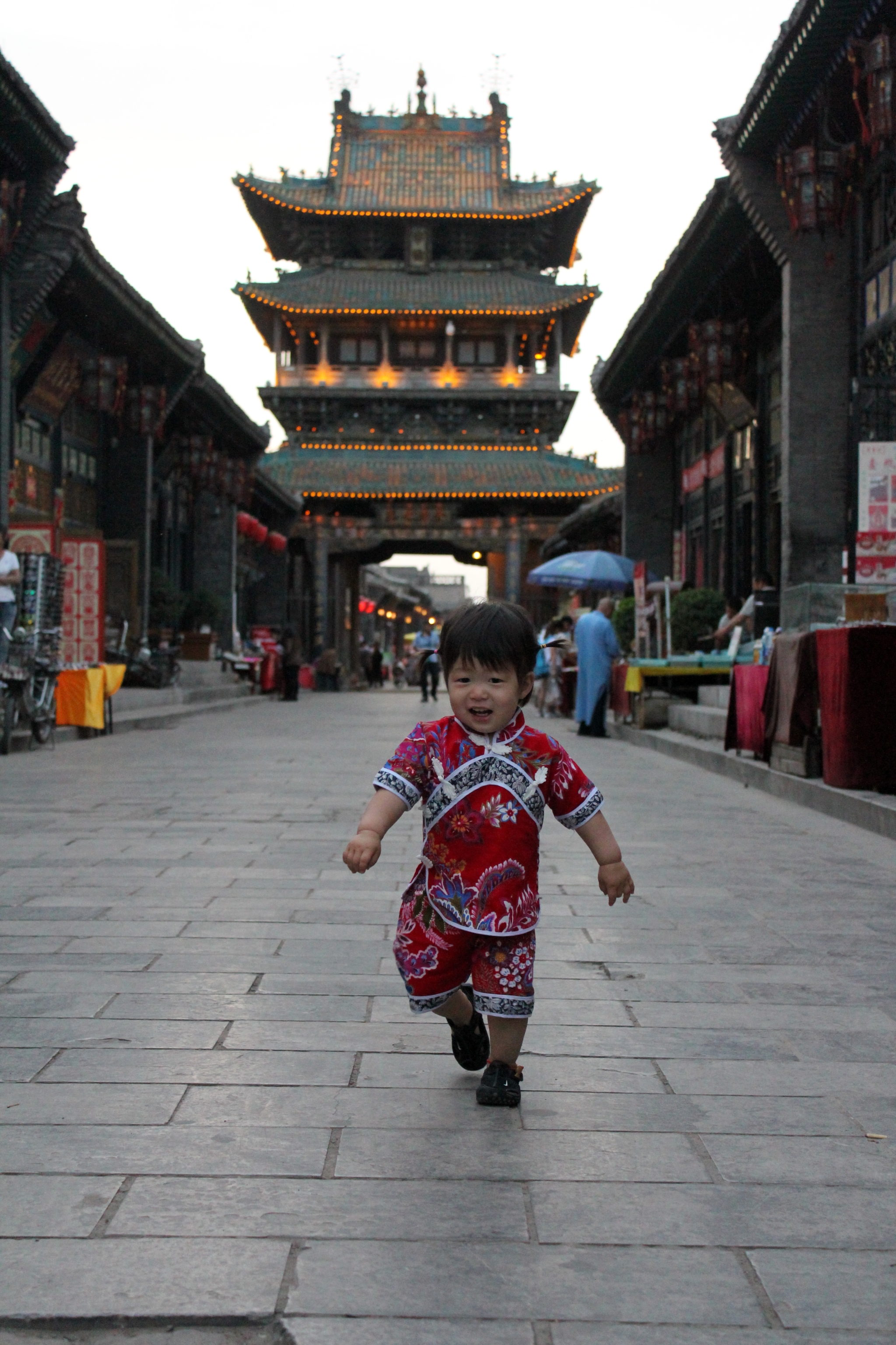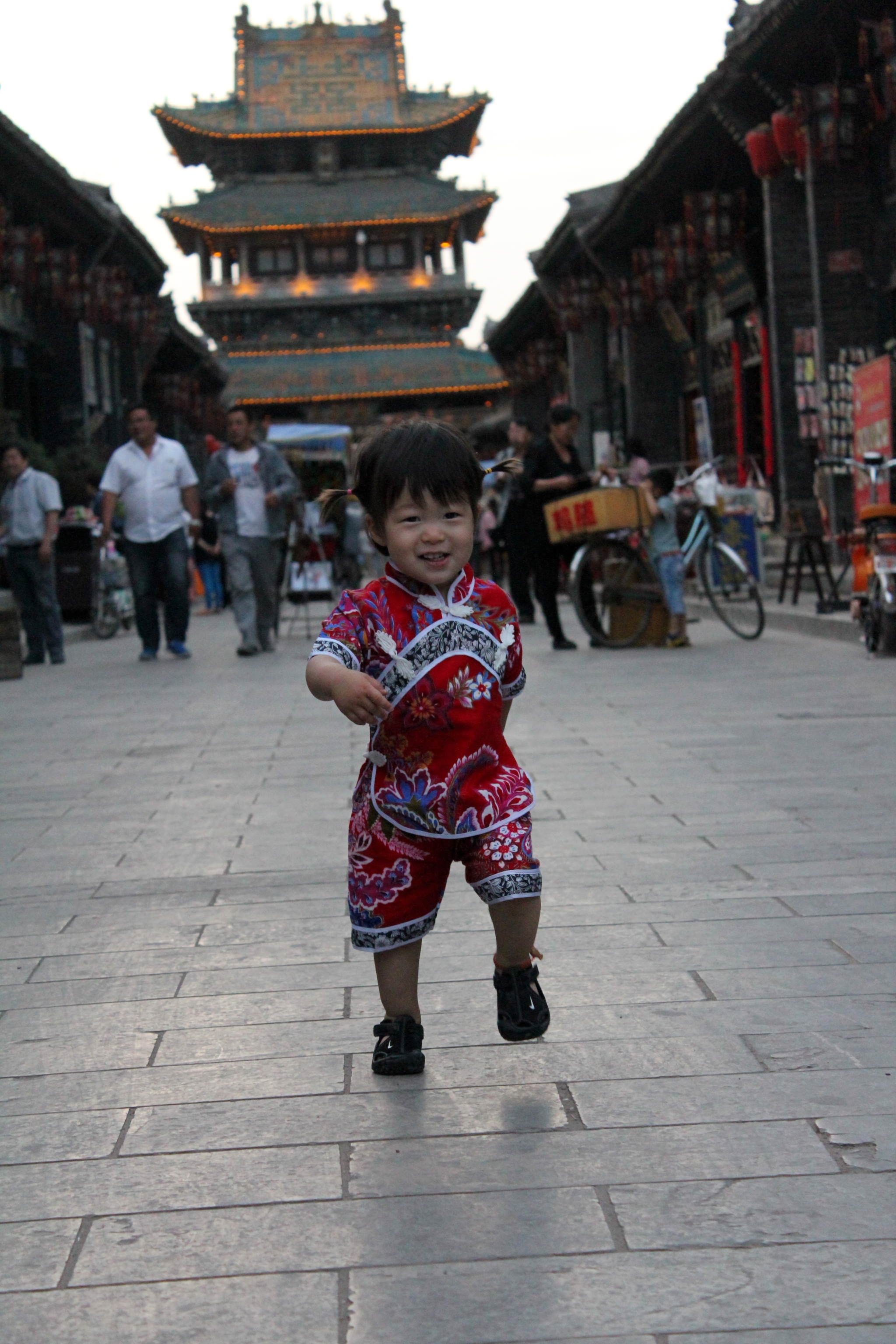 客栈的地里位置很好,出门往北一点就是古城中心--市楼。周日的游客还是很多,eason跑来跑去的很开心。花了2块钱买了一份古城地图,穿过市楼,往西大街走。目的地是日升昌票号。