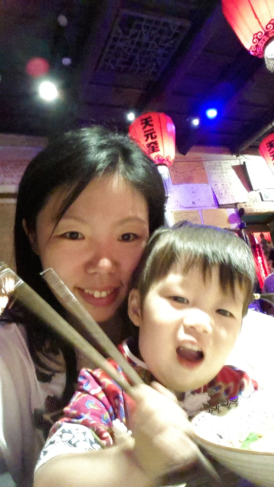 自己带娃就是这点不好,都没有合影。哈哈定时来一张。拿了钱包准备出门吃饭。没想到他就直接疯跑到街上了,跑了几个来回才肯回去吃饭。