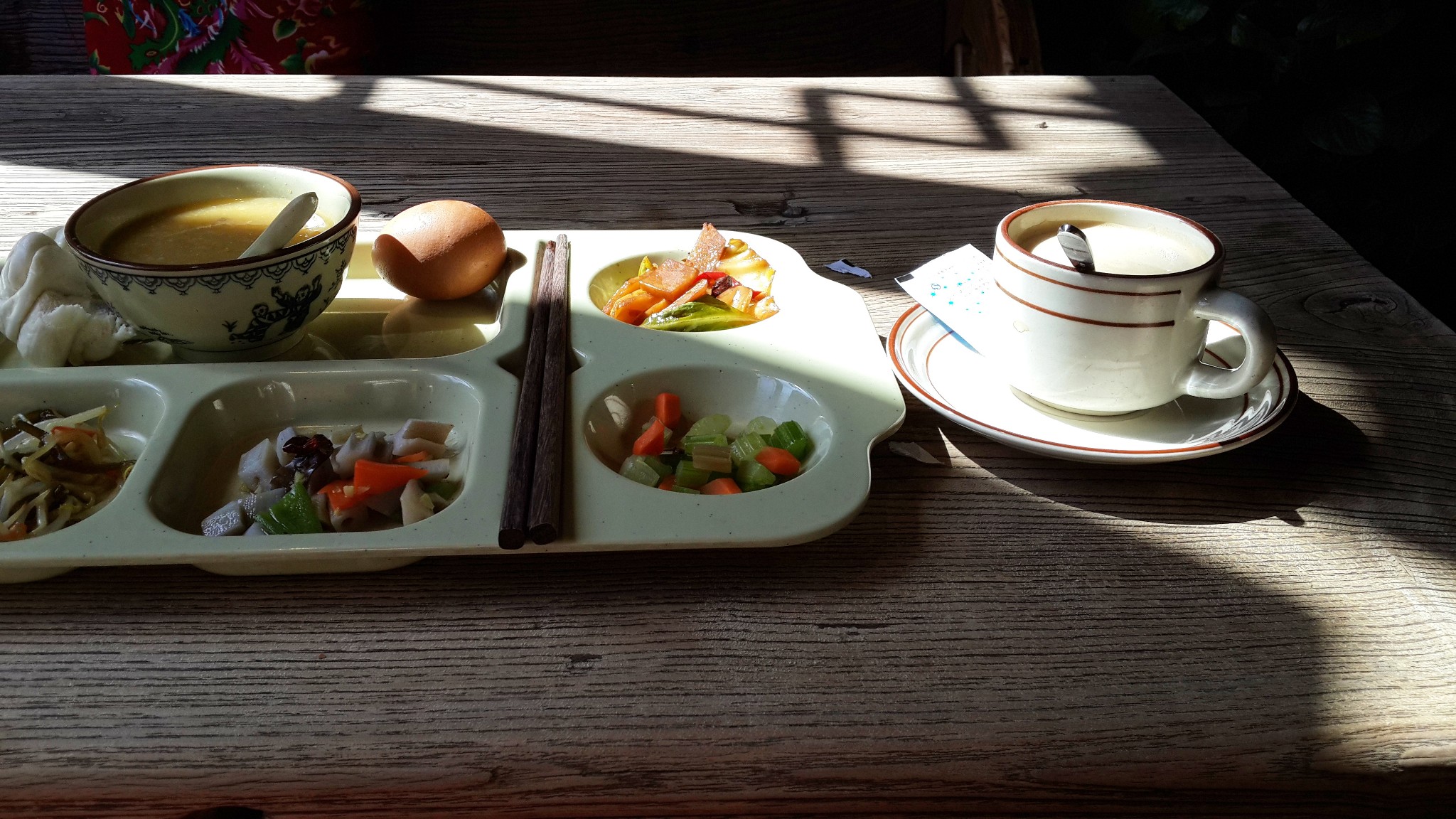 D3 早早就起来了,今天的太阳格外耀眼,收拾一下去前面吃早餐,今天要了中式套餐,15元一份,米粥可以随便加。