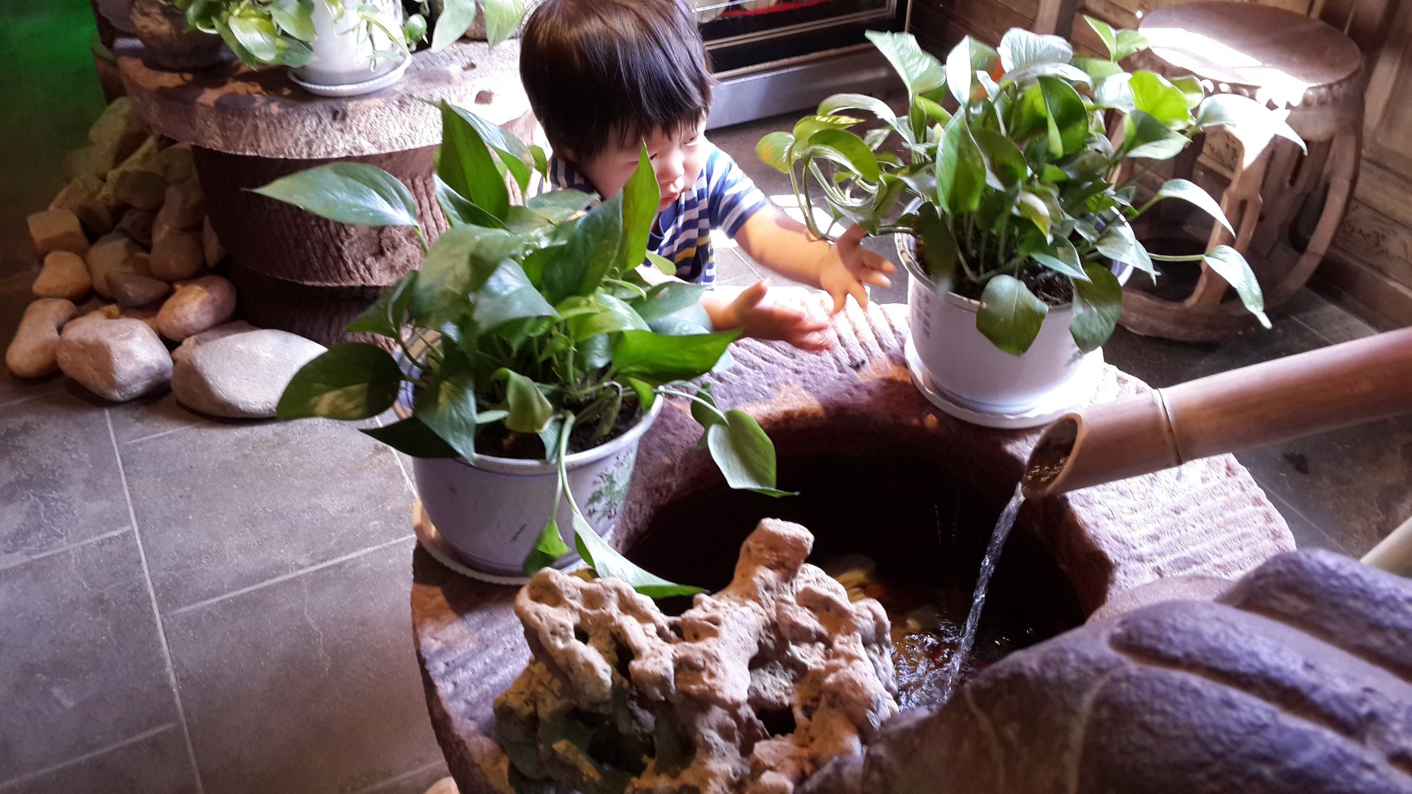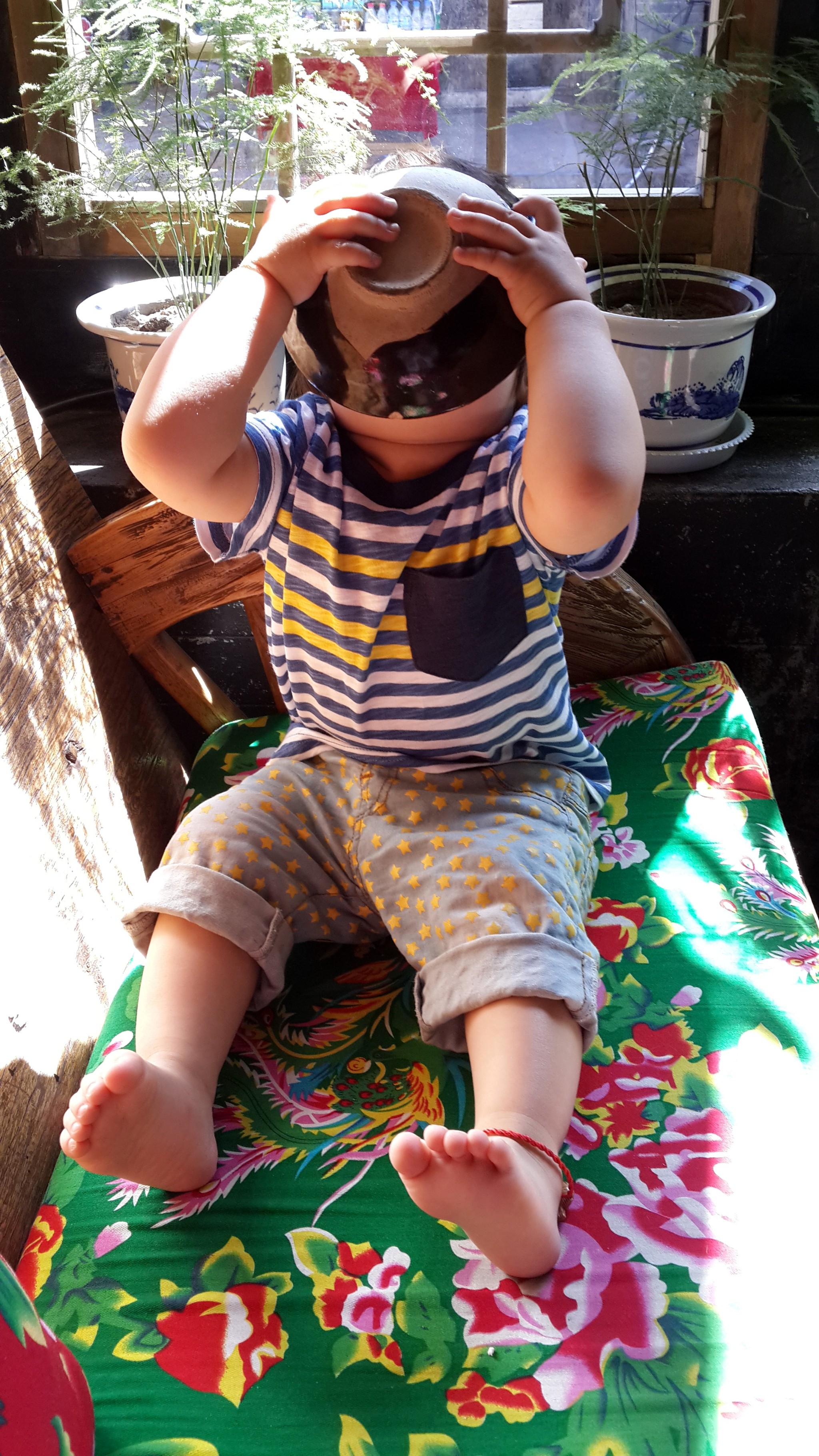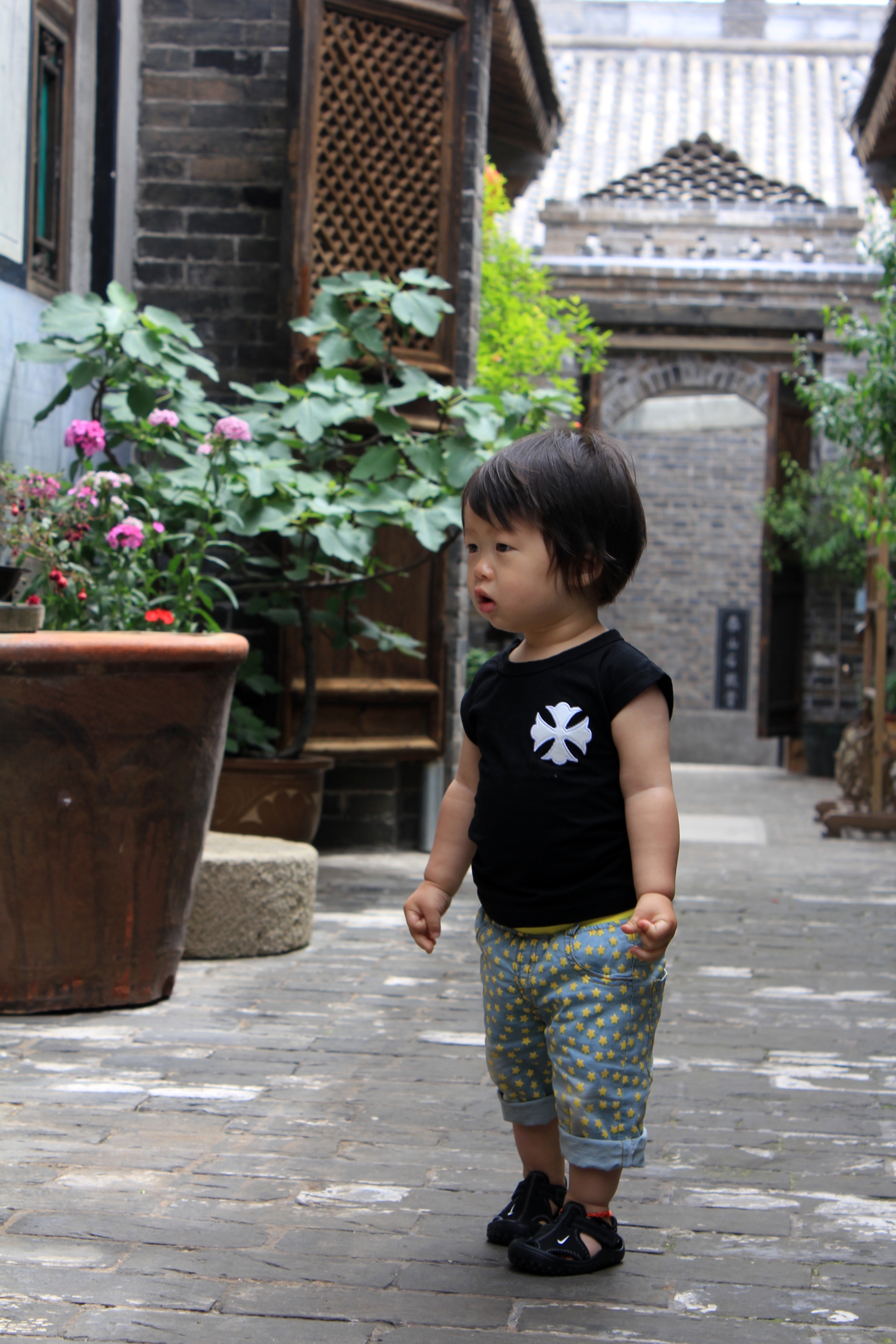 换了件衣服,出发!!!eason才1岁4个月,正是喜欢探索的年纪,于是我们又在小院里面磨蹭了一阵子才出门。