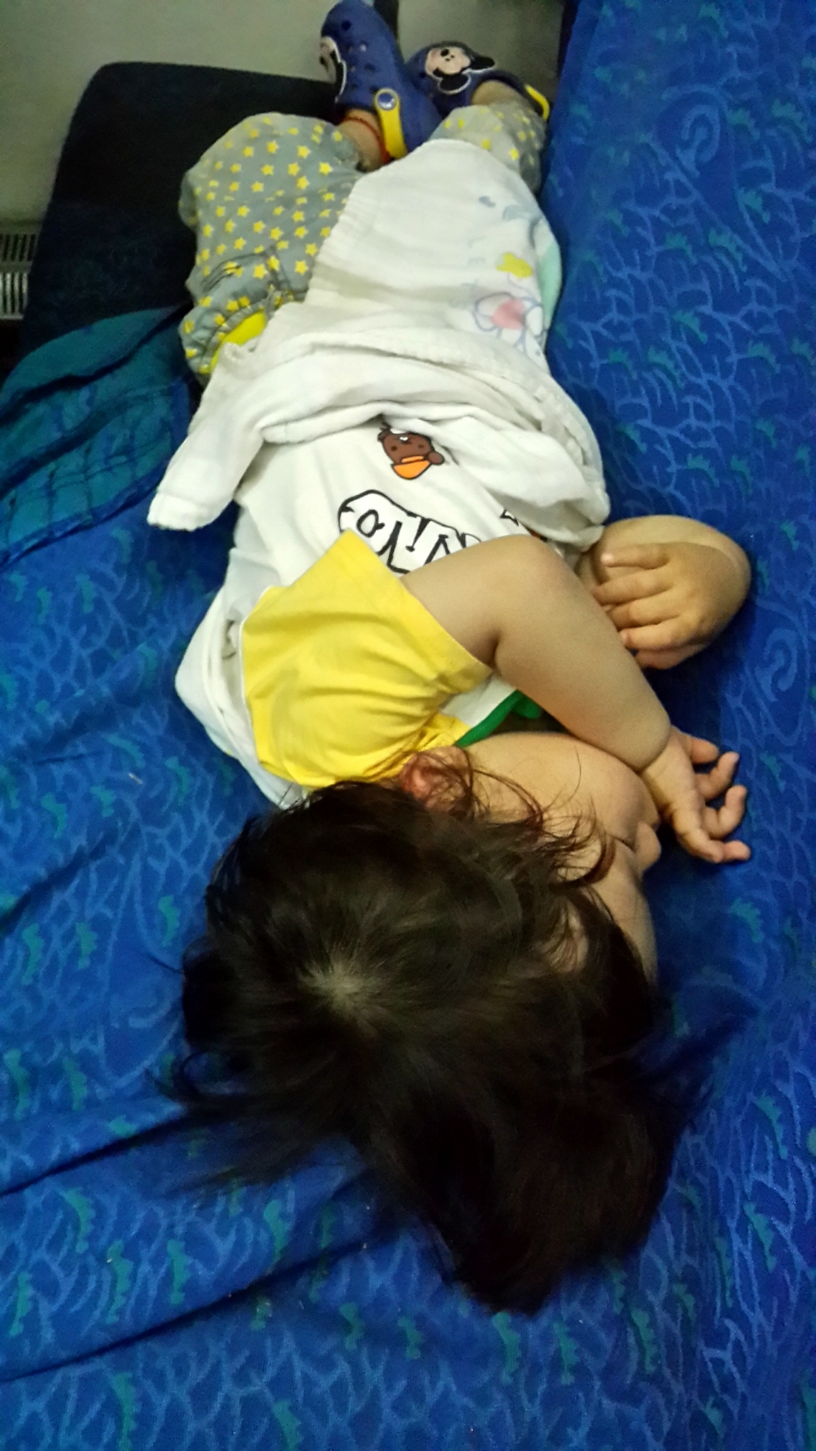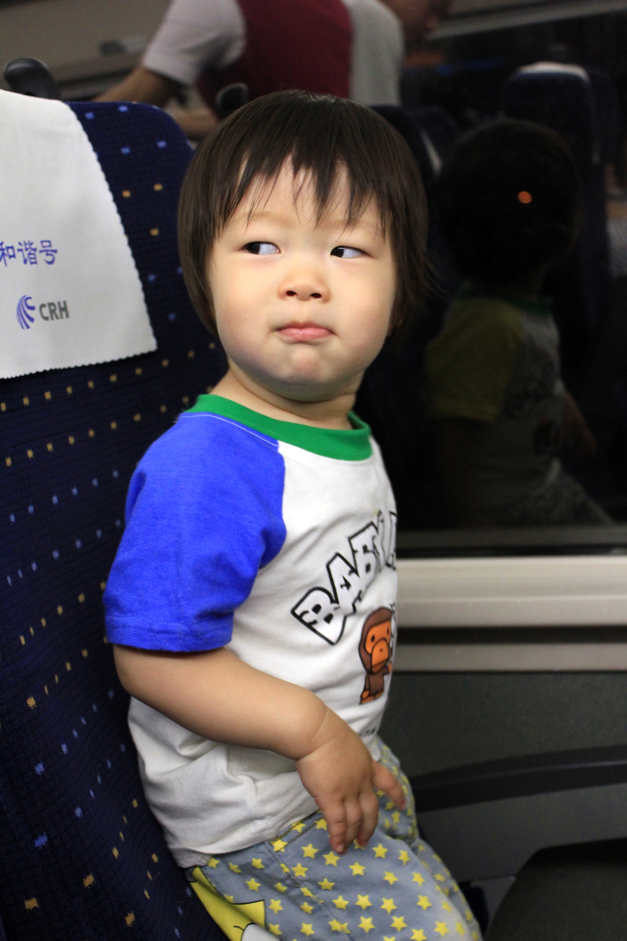到达太原 是夜里11点多,买的太原 --平遥 的火车是11点23开车,根本没有出站,直接从4号站台出来,又从2号站台上去,车已经开始检票了。抱着eason跑的一身汗进了车厢。从高铁到快车真的是一脚天堂,一脚地狱。我现在说还是为时太早,回来的火车才叫精彩,后面再说。这要是以前对我都不叫个事,但是带着娃习惯一切都舒适边界了,一下来有点小小的不适应。eason实在坚持不住,睡了。旁边的情侣到榆次 下车,给我们留下很大的地方,终于可以躺着睡了。