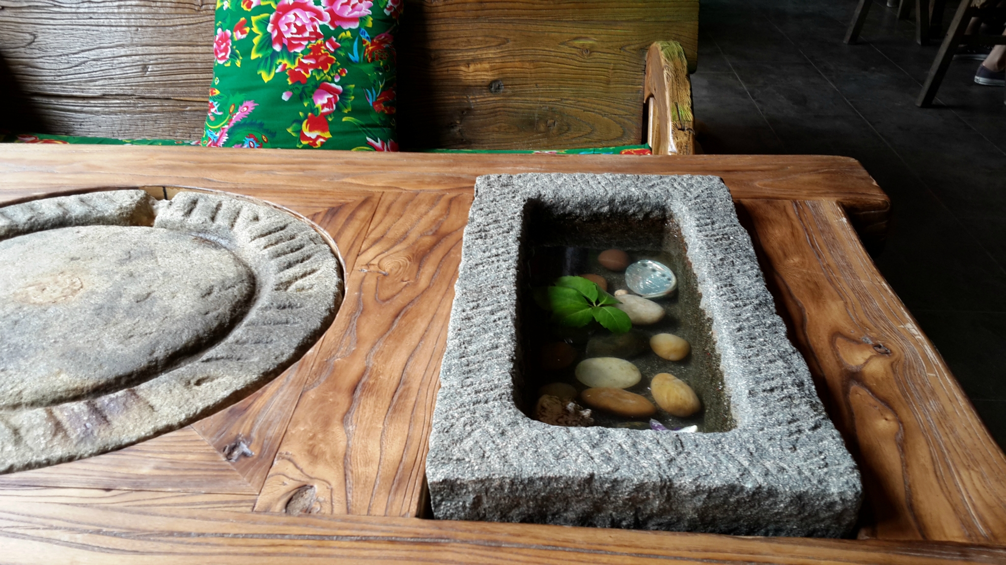 转了一圈出门去,门口一个元宝似的石头摆件,我不确定是不是石凳,不过作为石凳很好。我们客栈也有一个这样的元宝。