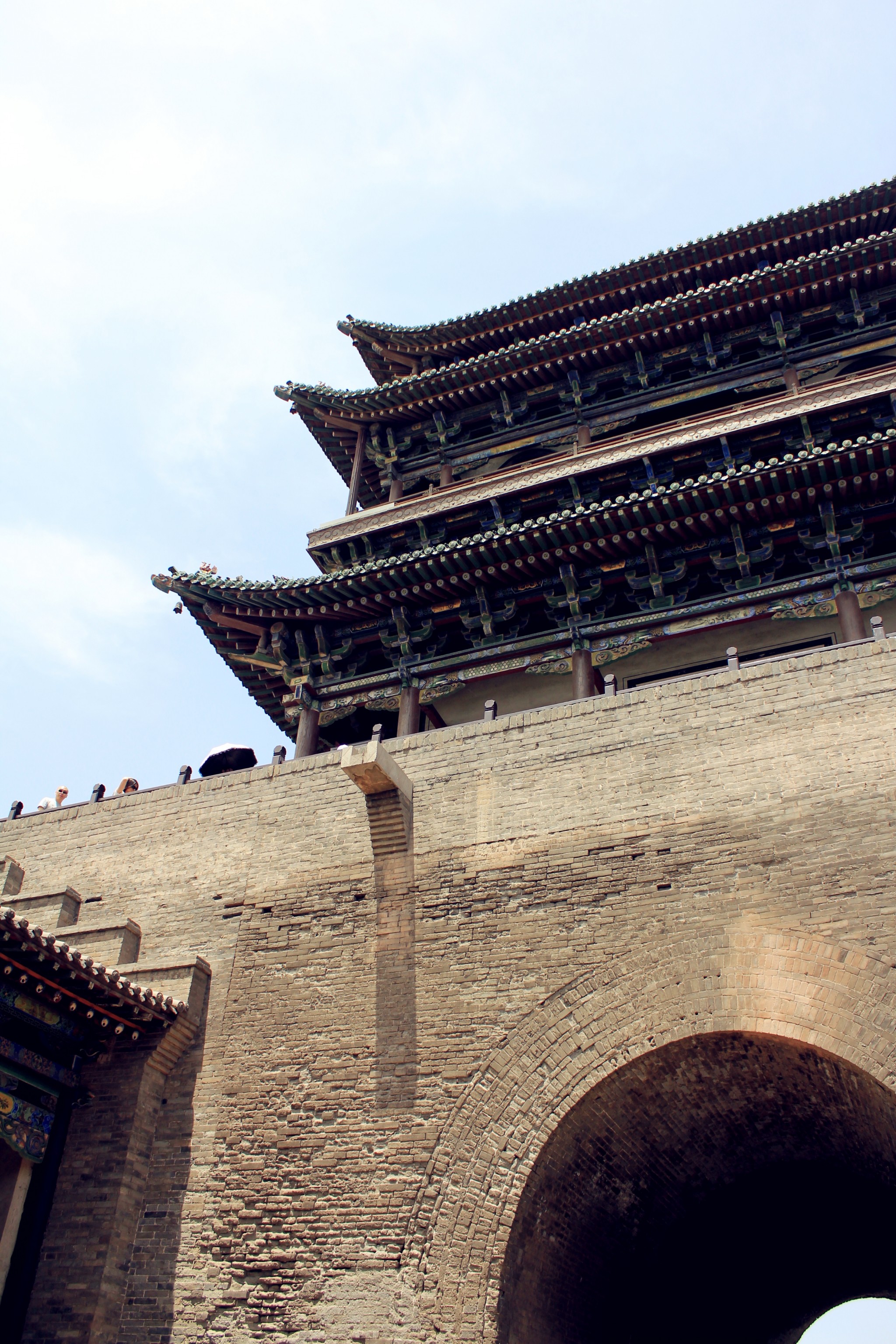 回到客栈退房,客栈的人说可以送我们去火车站,收费但是可以接受。算算还有点时间,客栈人建议我去南门城墙转一下。平遥 古城是仿照乌龟的形状建造的,而南门城楼就是乌龟的头。所以存好行李,我们又出发了。