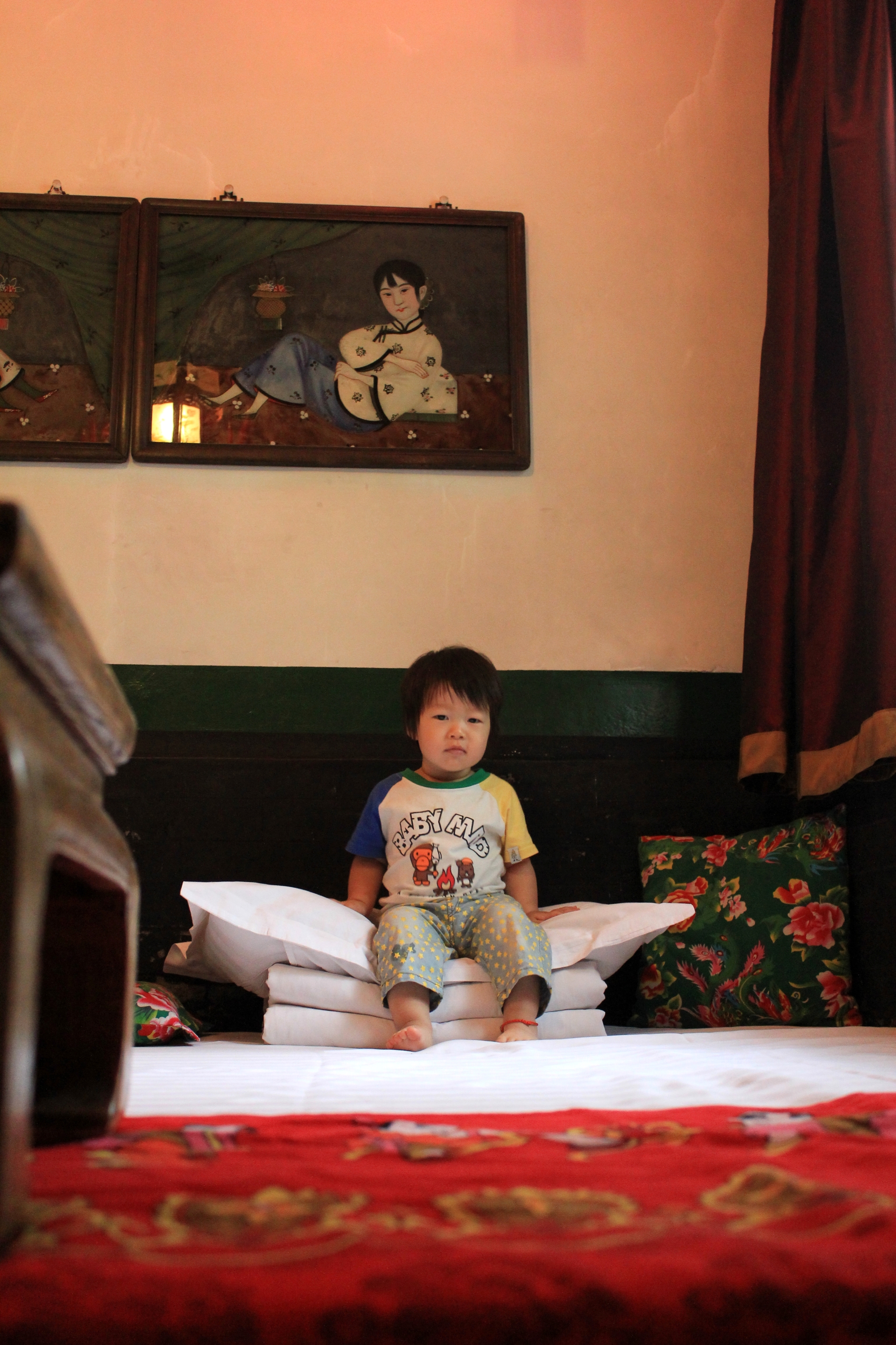 D2 早上睁开眼才意识到,我们是在平遥 ,随即起床收拾东西。eason也醒了,躺在床上滚来滚去。