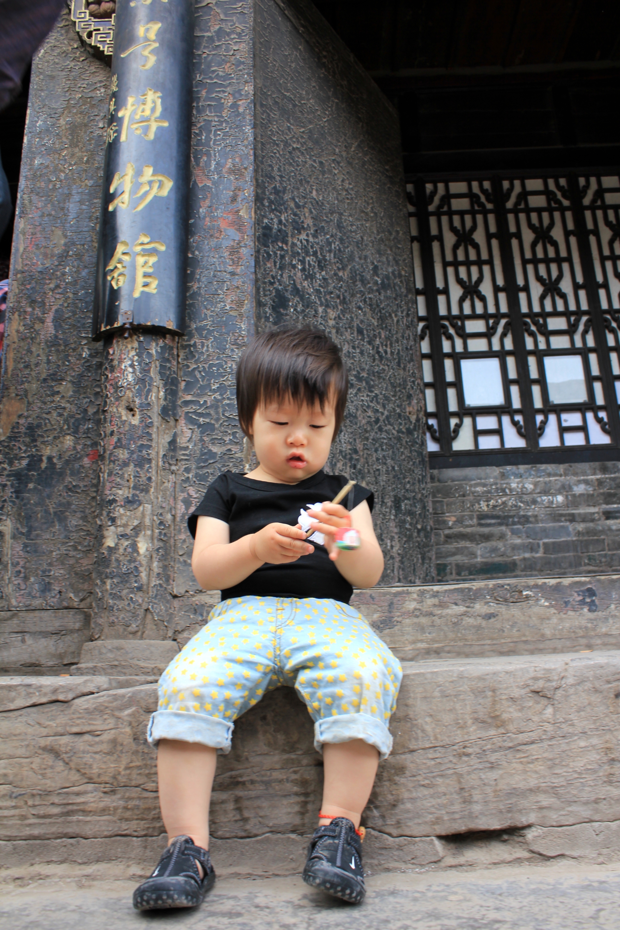 平遥 很多景点,一张通票120块钱,三天之内可以随便进出。但是由于带着小宝,我没有都走遍。即使没有宝的时候,我也不是喜欢走遍景点的人。其实一个小小的院落,找个树荫遮蔽的地方静静的坐下,看着eason摸摸这、扣扣那,时光静止,岁月静好……