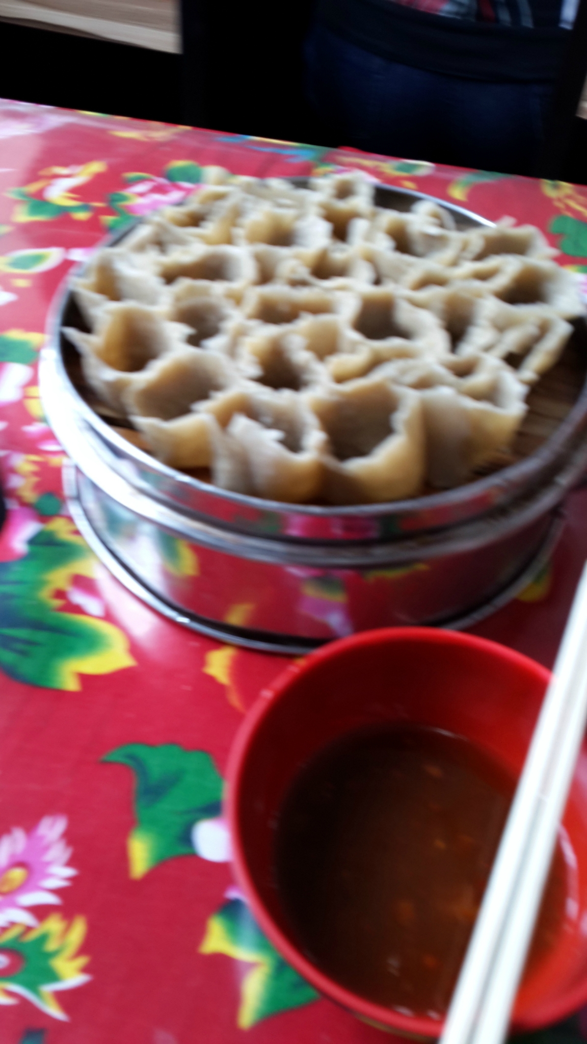 出了日升昌已经是中午12点多了,走着,去觅食。从西大街往东大街走,整个街道都是旧旧的味道。就这么漫无目的的走,随便找了一家小餐馆,要了一份沾水栲栳栳,要了个手工月饼给eason,补充个体力。