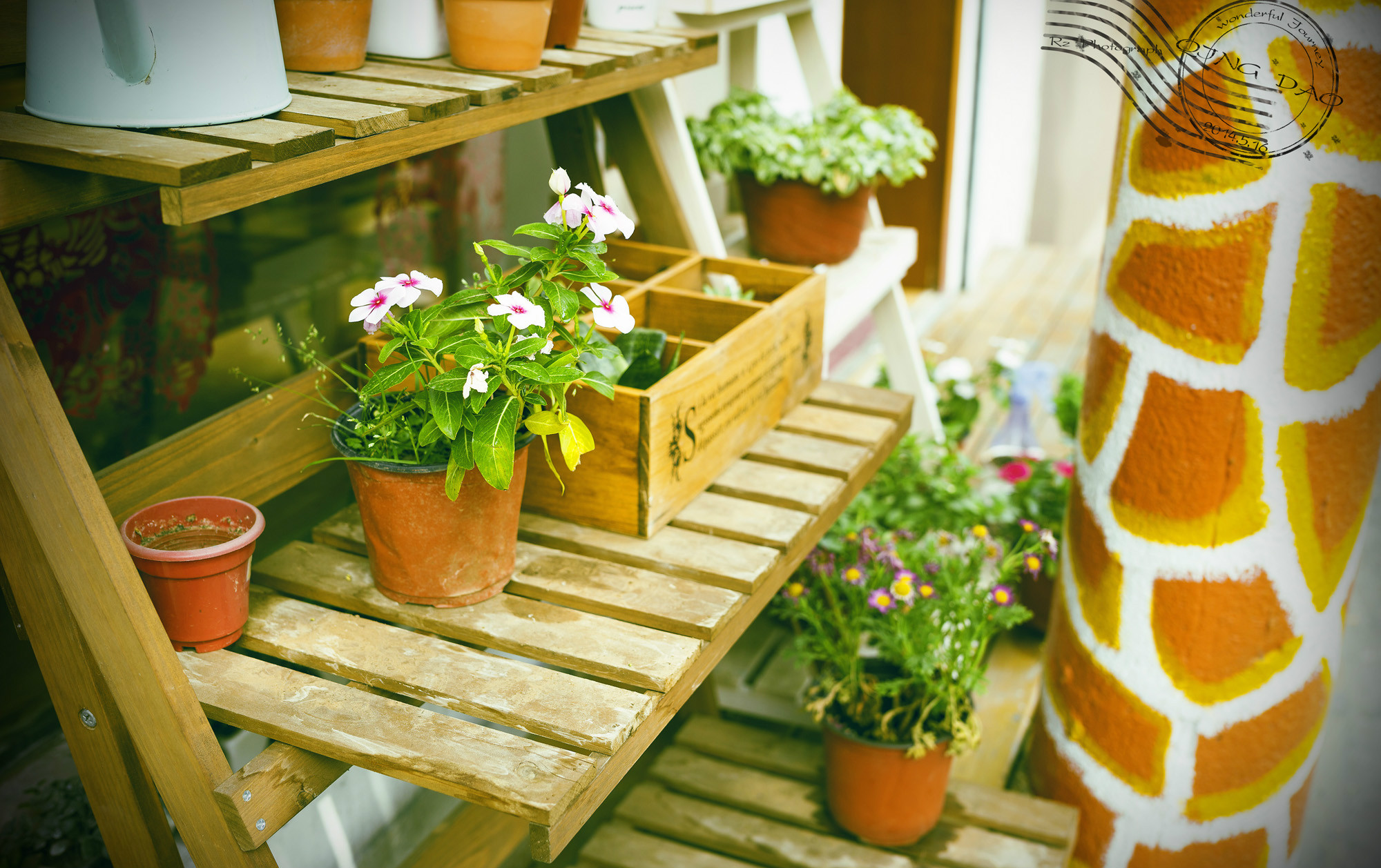 走进一家庭院咖啡厅,坐在院子里休息一下。