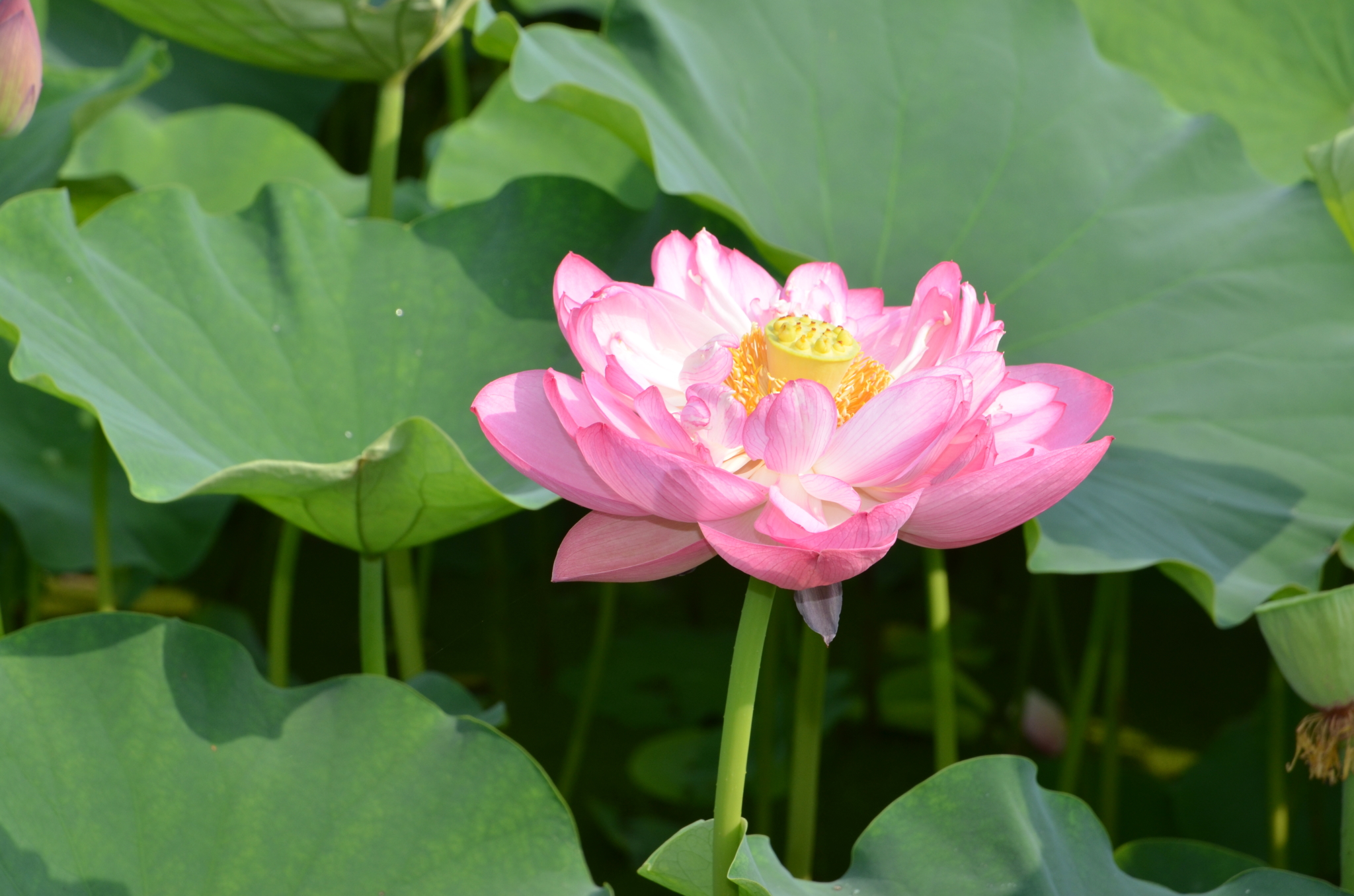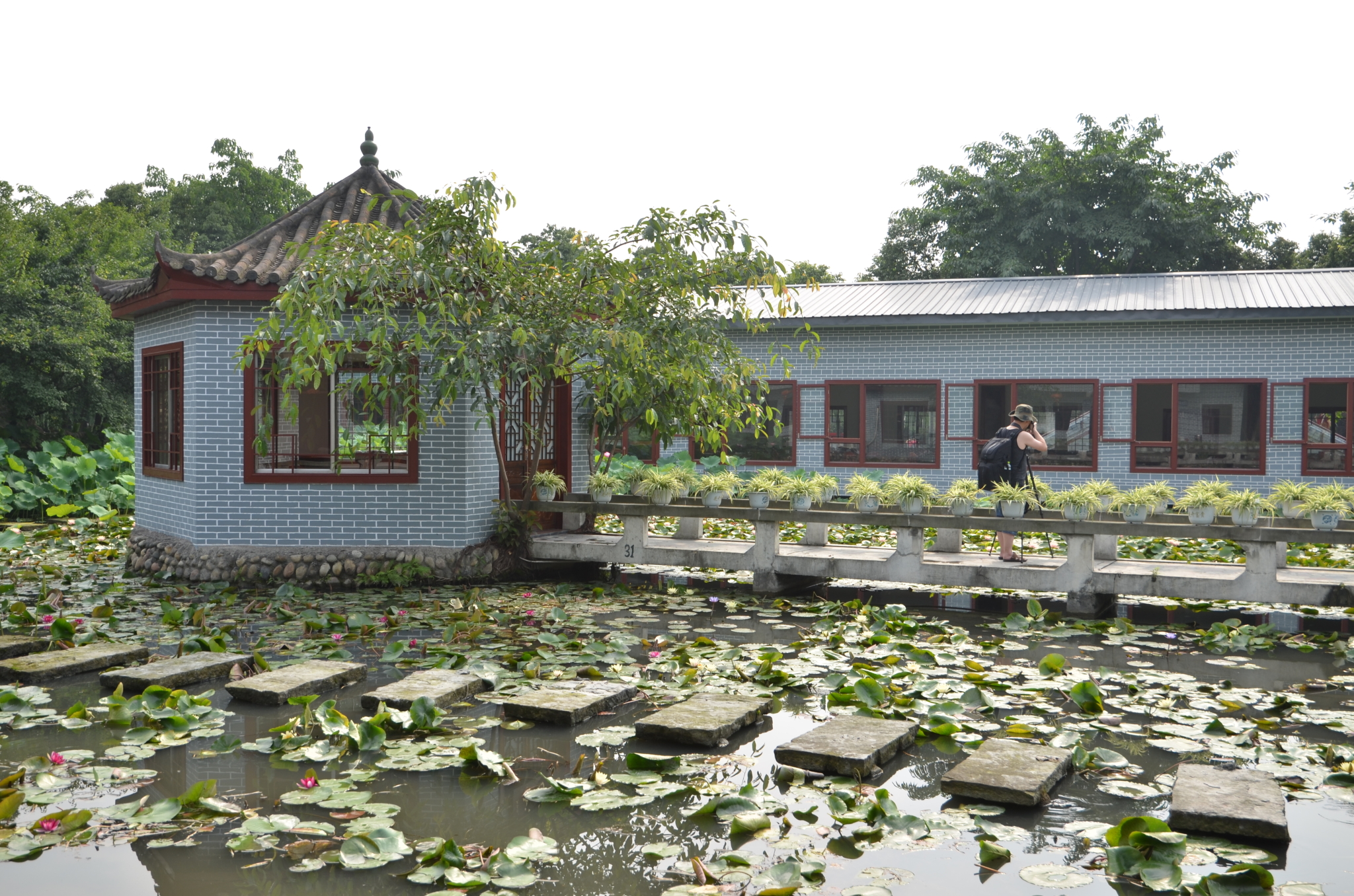 成都市荷花山庄, 是一个大型的农家乐,映入眼帘的当然是大片大片的荷塘和荷花,开得很漂亮,有的也开始结莲蓬了。 位于金牛区付家碾村八组 ,沙西线上成都欢乐谷前行1.5公里,过完下穿隧道右边公交站台右转即到。交通: 经过荷花山庄的线路有119路,155路,362路,365A路,365路,749路,88路等公交线路。