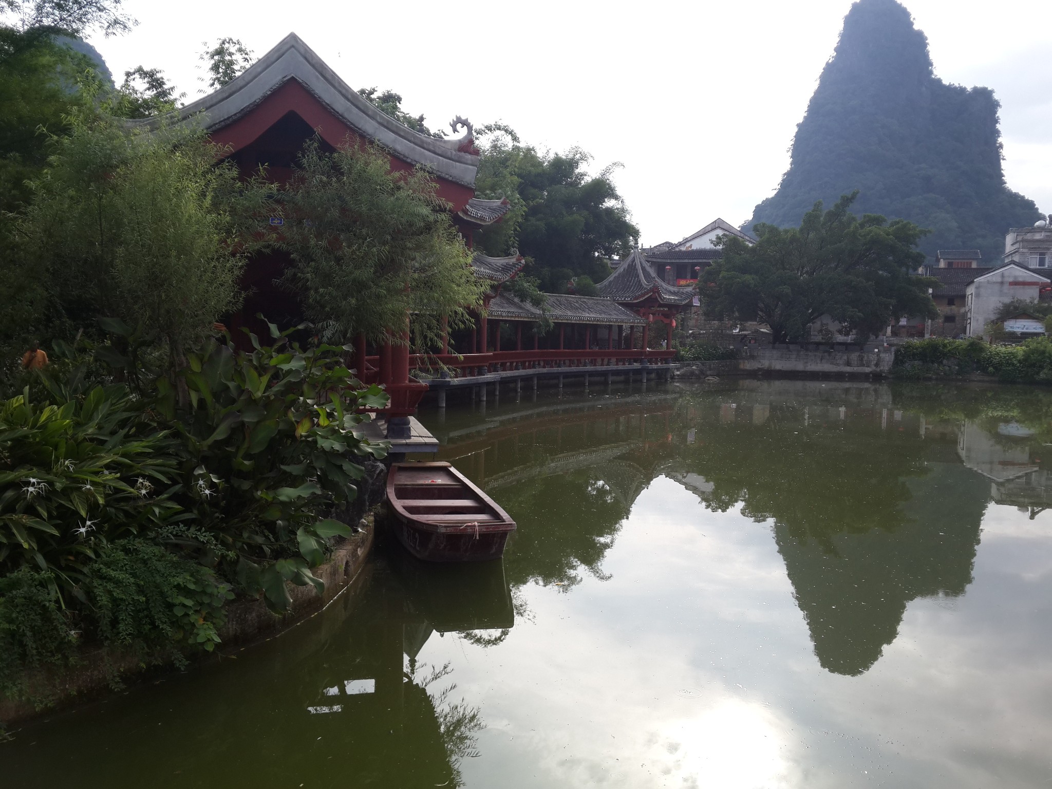 与两年前去/***{阳朔} 相比,庆幸的是广贺高速已开通了(旧的导航也没有显示),以前40多公里国道足足要一个多小时,现在高速仅需20分钟。塞翁失马焉知非福,当我们从黄姚高速路口下来也11点左右了,/***{黄姚古镇} 离高速路口不远,很庆幸的是我们到景区门口的时候工作人员已经下班了,没人收门票,联系了我们住宿客栈阿姚老板,她让我将车停在镇政府里面,很不巧的是由于某个大领导也来这边视察(后面游玩都是托该大领导的福),镇政府停满了车,我们将车挺在了酒壶山酒店停车场(停车费不贵,停了两天给了10元)。