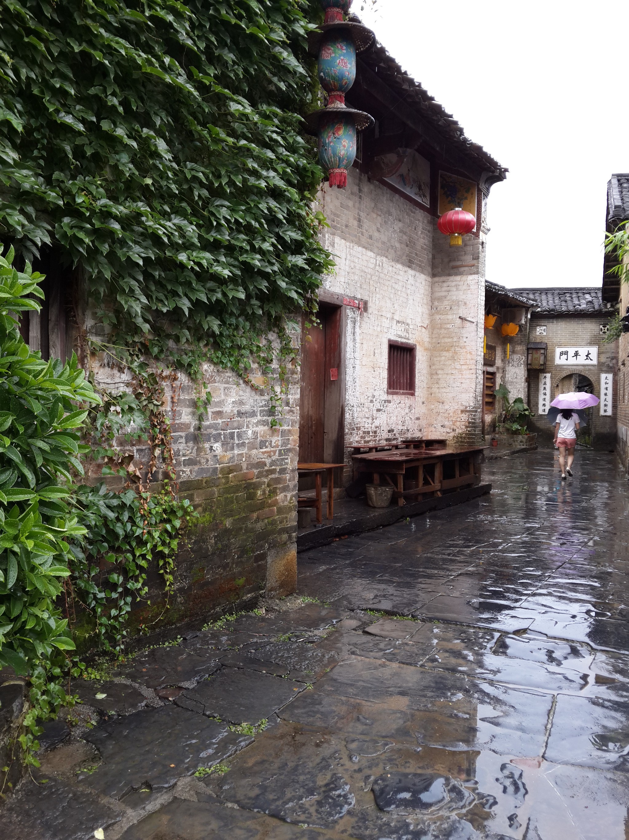 在拍摄的过程中,遇见了一个穿着碎花小布的女孩,身材很好,挂着一部单反,拿着一把透明塑料雨伞,很合适这个场景,但没能鼓起勇气让她当模特,犹豫之间,她消失在小巷的转角处,后来再也没能遇见了。吃完早餐,发现景区的游人越来越多,还见了几波工作人员在查票,我们也懒得出去了,继续在客栈中喝茶吹水,中午在景区吃完饭买了点手信就打道回府了。