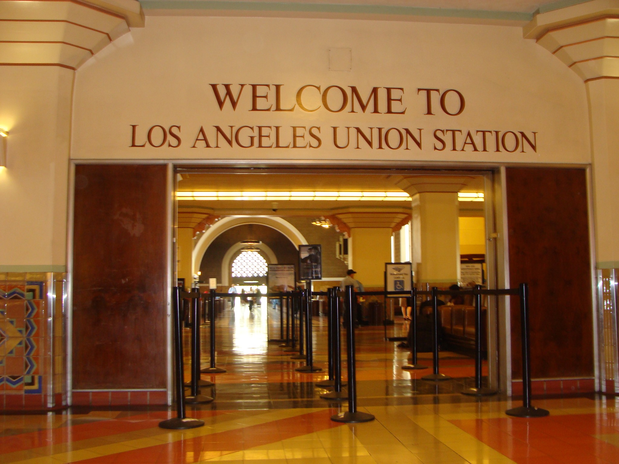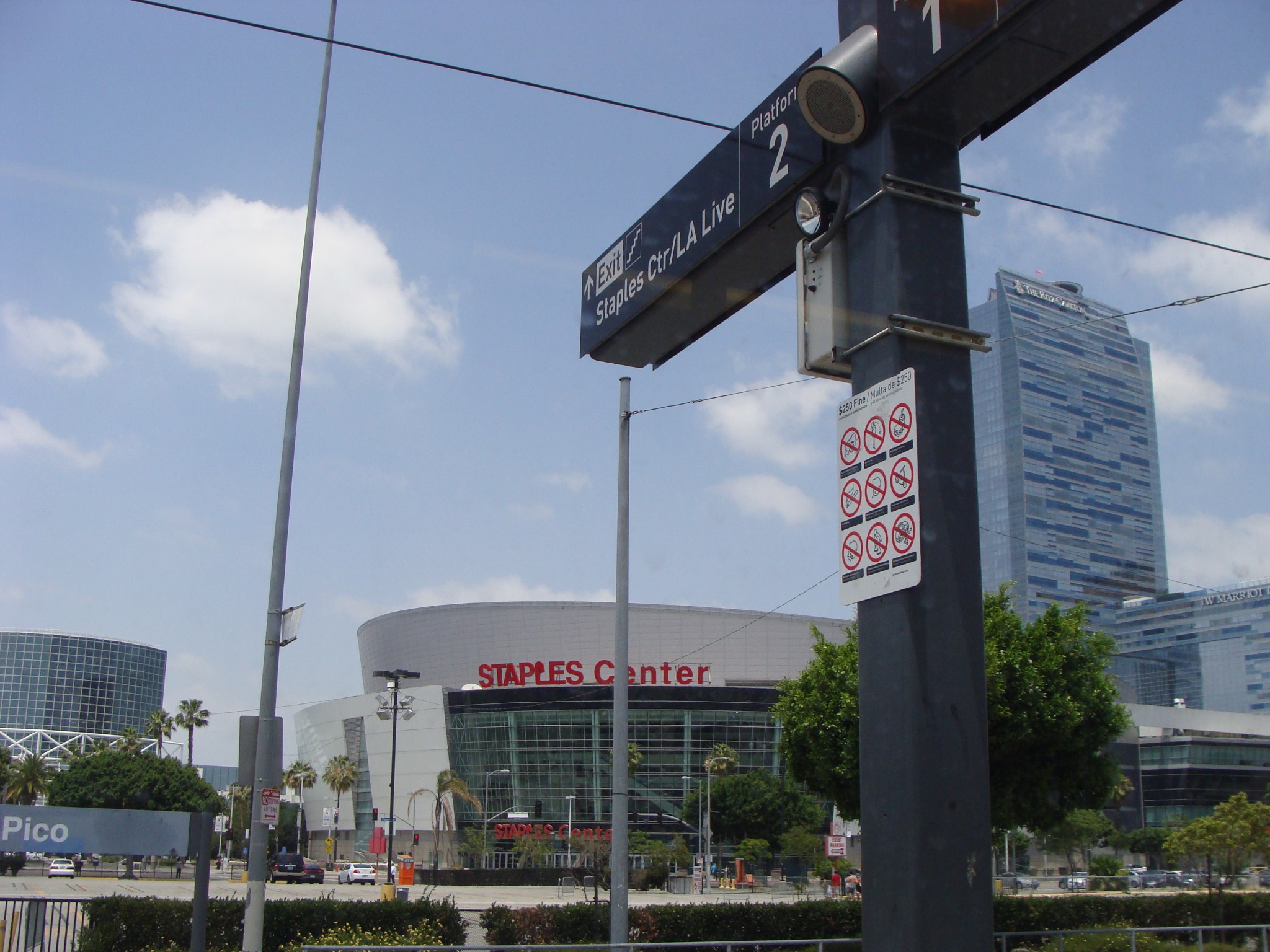 巴士一路开,很快到了终点站,下车后也没看到地铁站,有个白胡子大爷看到我在看地图就热心的问我想去哪里,得知我想去最近的地铁站,大爷不住的摇头,看来我坐错车了,正说着,有另外一辆车进站,大爷指了指,推我上车,谢谢你好心的大爷。这辆车出发了,两边风景不错,可是我咋觉得越来越像乡下?既来之则安之,就当公车一日游吧,咦,路边有一家肯德基(只是此次美国 行唯一看到的一家肯德基,快餐基本是麦当劳,Subway的天下,几乎每个加油站都有),目送肯德基远去,有开了差不多20分钟,在一个铁路口,司机黑大姐(好像公交司机黑大姐很多)指指车头右侧让我下车,我下车一看,原来是个轻轨站,回头谢过黑姐姐一路飞奔过去,这是个开放式站台,没人检票,没有工作人员,只有自动售票机,我有一日票也就没研究咋买票,看到运行路线图上有“Union Station”联合车站,我就放心了,上了地铁刚开开一站还是两站,熟悉的场景,湖人的主场有没有?!