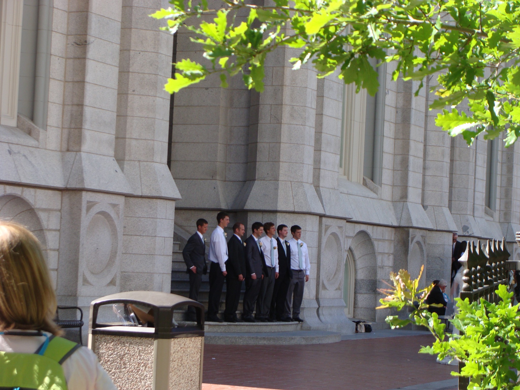 伴郎团在神殿门口合影,女性观众,有没有你的菜?
