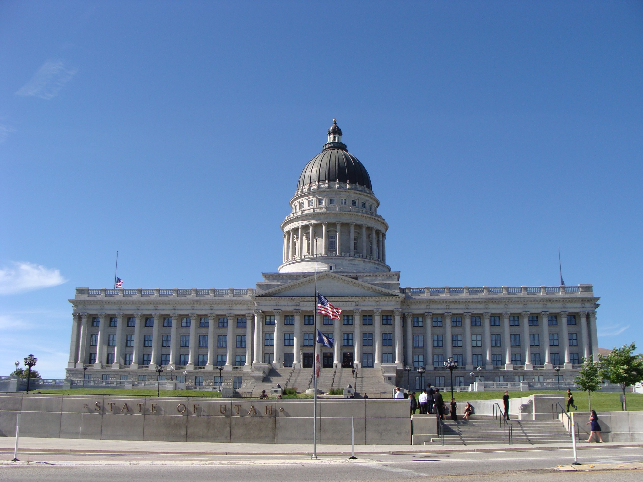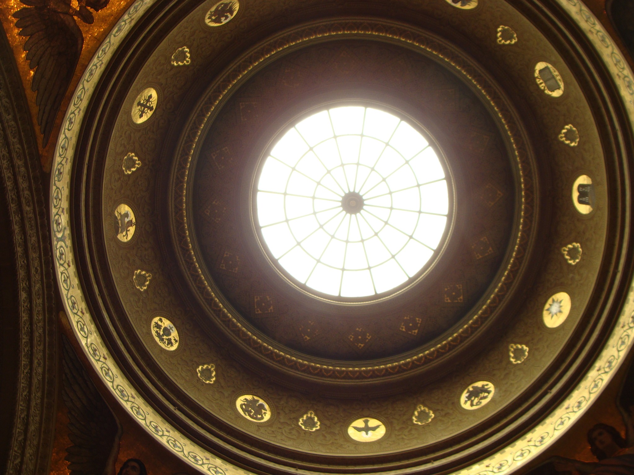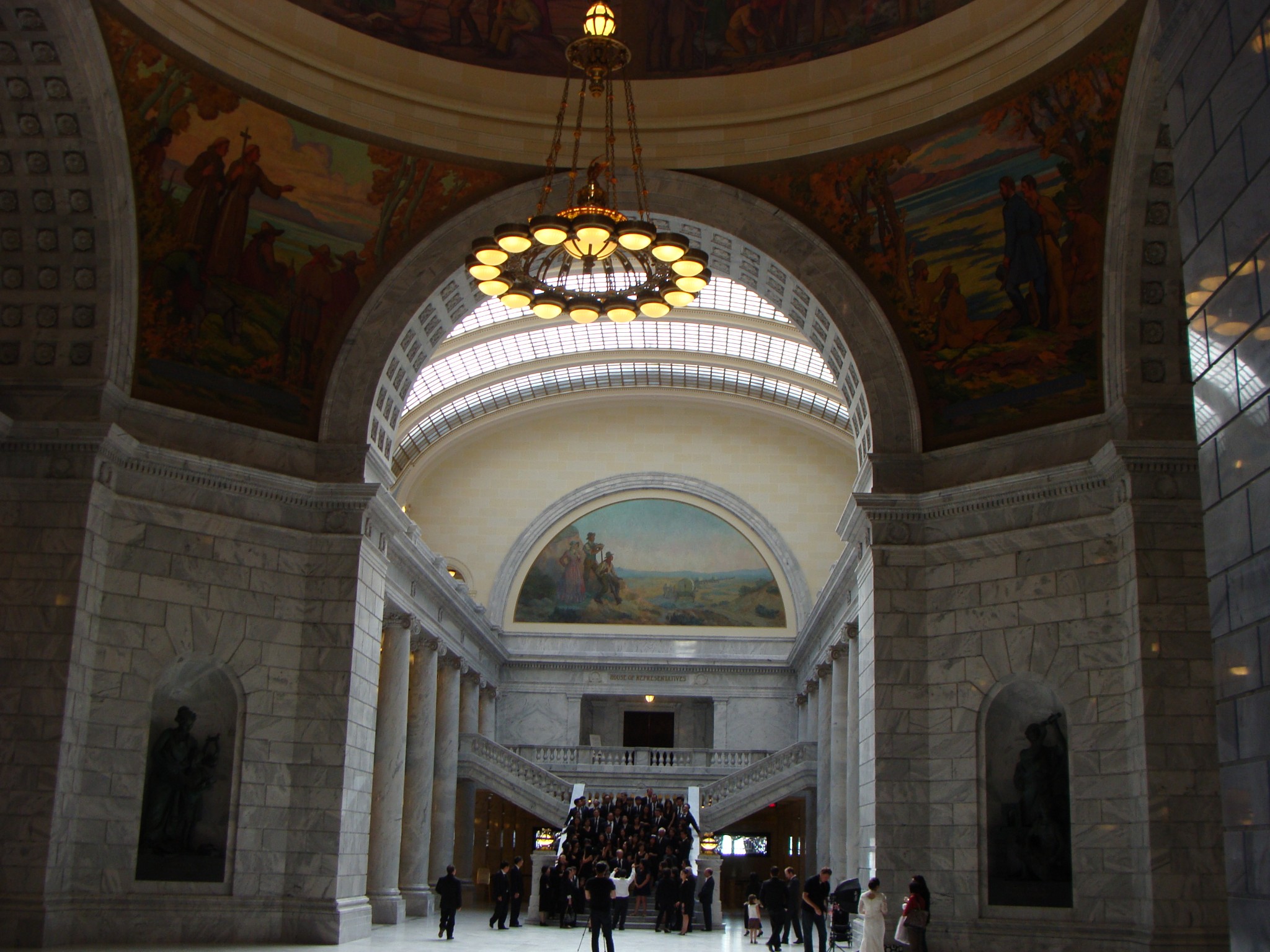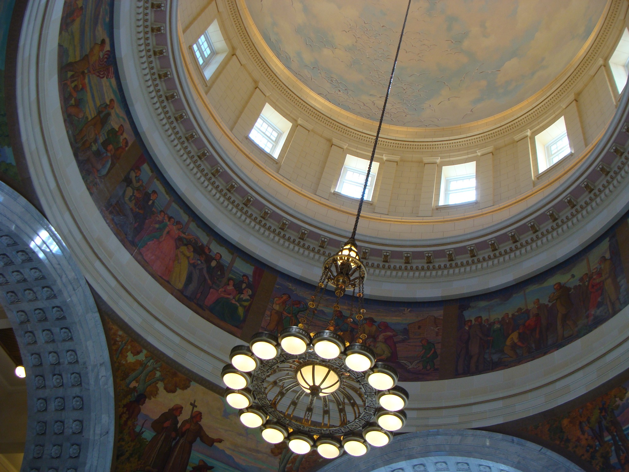 犹他州议会大厦 ,穹顶装饰着色彩斑斓的描绘开拓者、狩猎者和传教士的works progress administrtion壁画