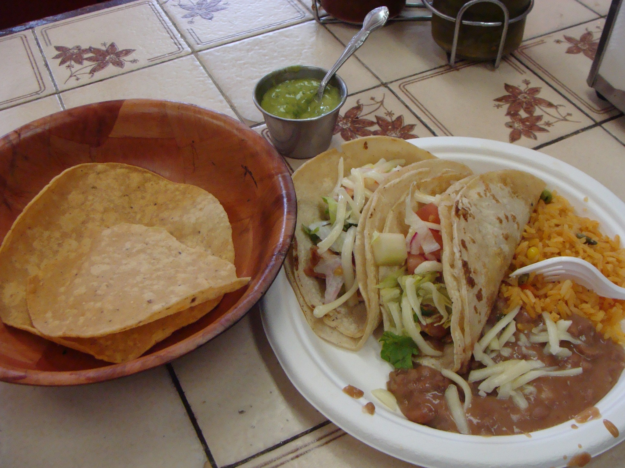 在美国 的一餐:墨西哥 鸡肉饼(薯片是送的)