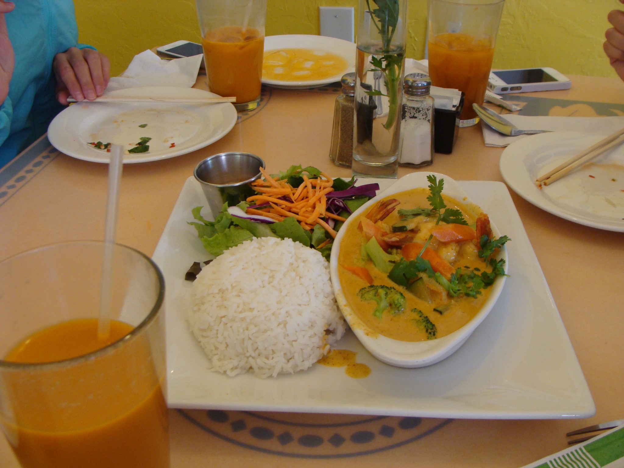 中午出来午餐,一出景区某个门就看到这家泰国 菜,同行的女生们嗷的一声就冲进去了